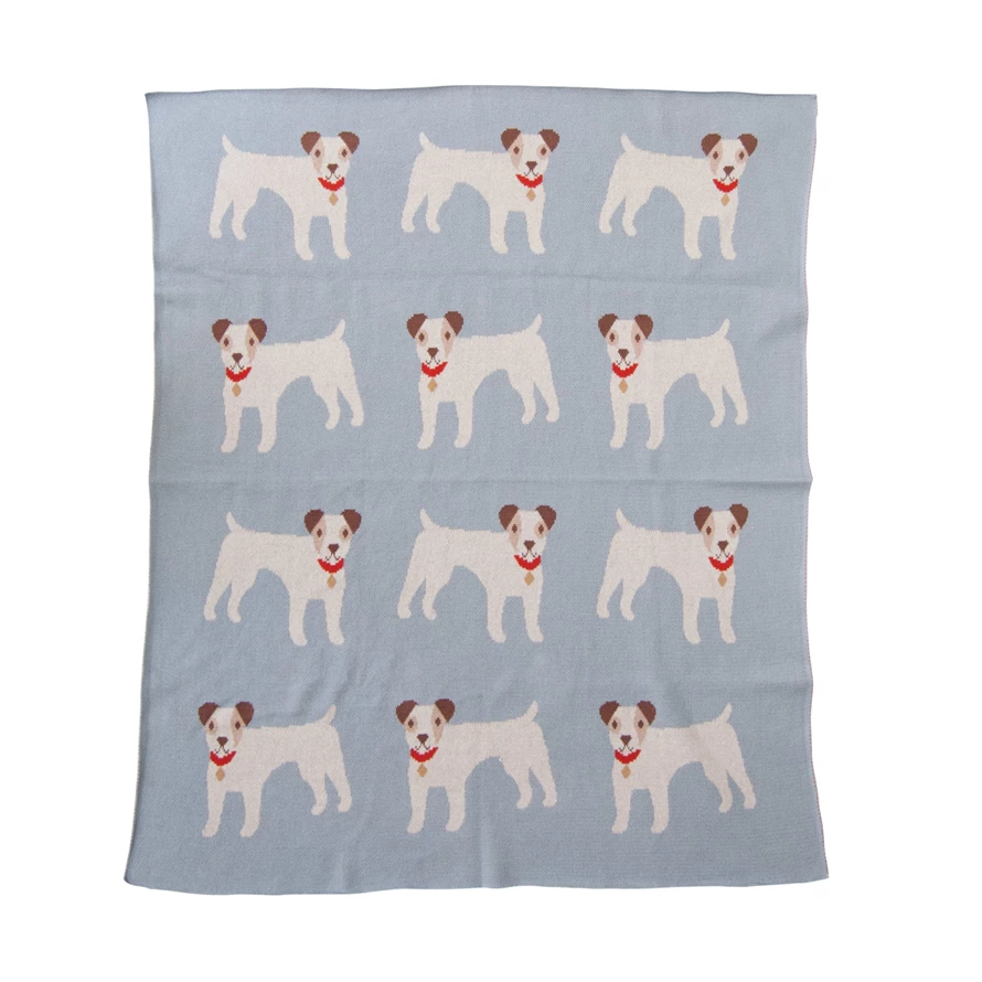 Cotton Knit Baby Blanket w/ Dogs ©