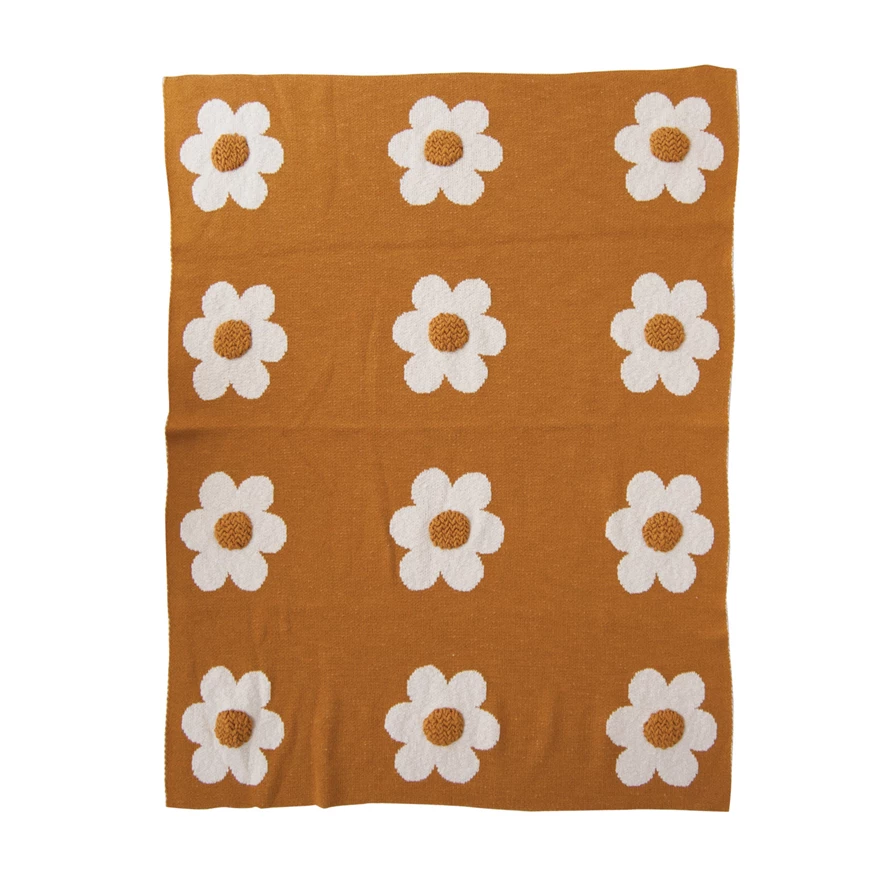 This cotton knit baby blanket with flowers keeps the baby warm and comfortable. This cozy and adorable baby blanket features a cotton knit material that is soft and breathable and has a textured and stretchy feel. The baby blanket has flower prints in multiple colors that adds fun and charm to any nursery. The baby blanket has a rectangular shape that measures 40 inches long and 32 inches wide, making it a generous size for any baby. This cotton knit baby blanket with flowers is a versatile item that can be used as a swaddle, a stroller cover, a play mat, or a cuddle blanket. It can also be machine-washed and dried for easy care. This cotton knit baby blanket with flowers is a cute accessory that can match any farmhouse, boho, minimalist, cottagecore, or modern-style nursery. It can be used to keep the baby warm and comfortable with its cozy design and quality material.