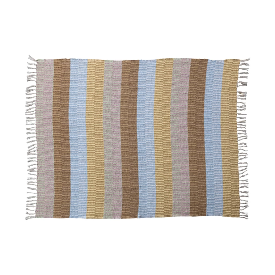 Woven Recycled Cotton Blend Throw w/ Stripes & Fringe