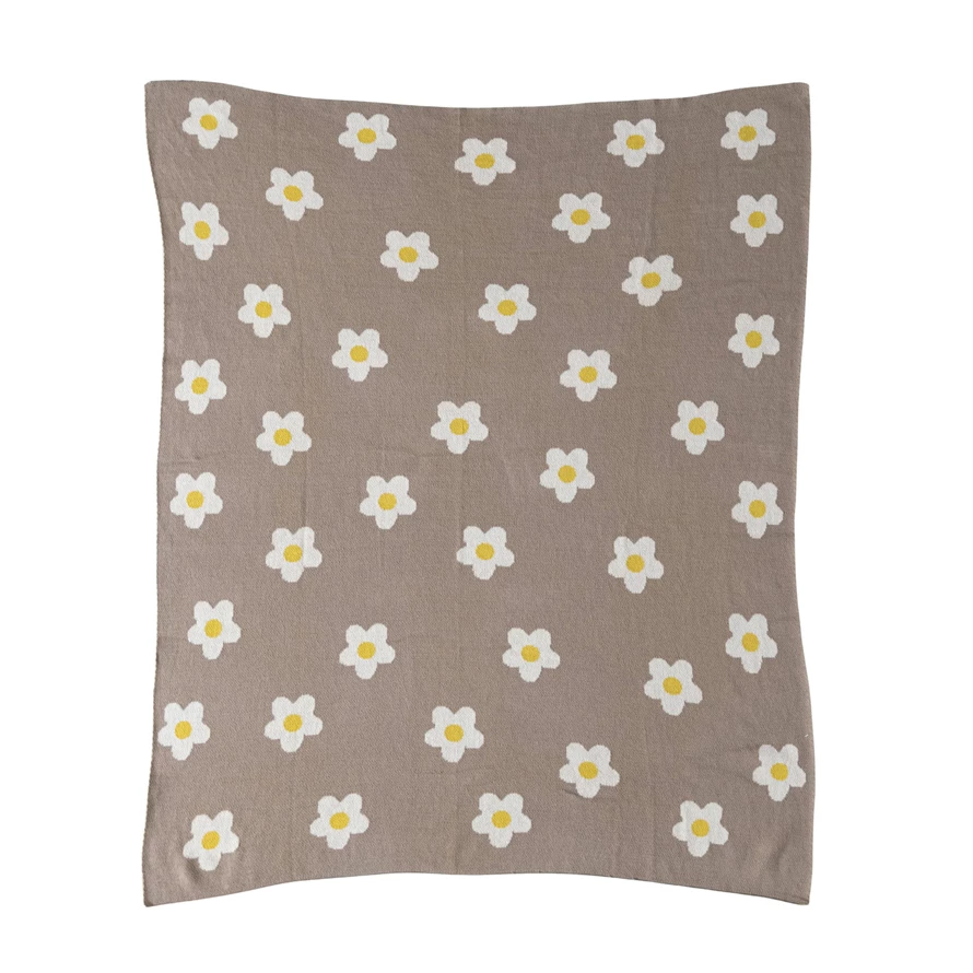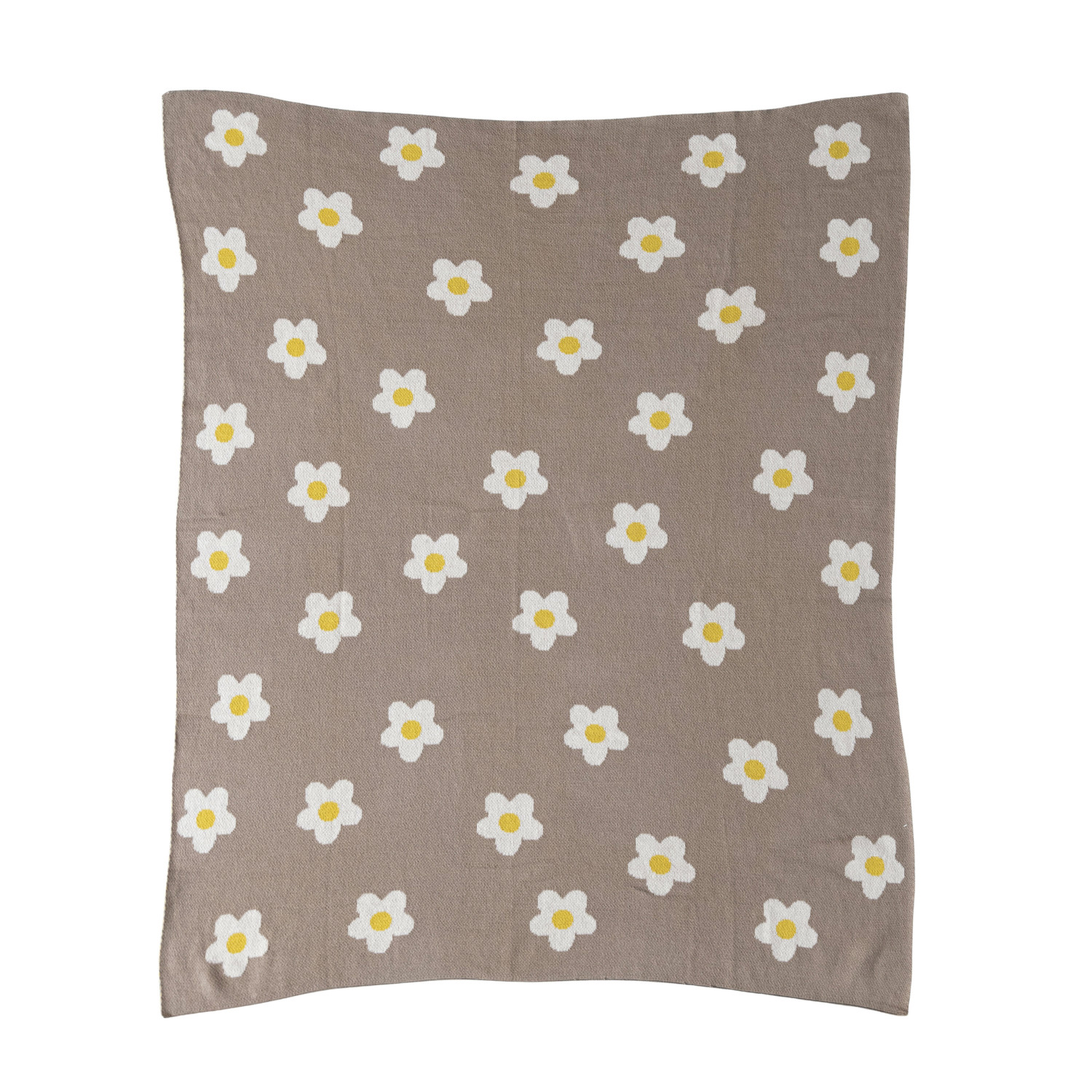 Catalog Name: 40"L x 32"W Cotton Knit Baby Blanket w/ Flowers, Beige, Natural & Yellow