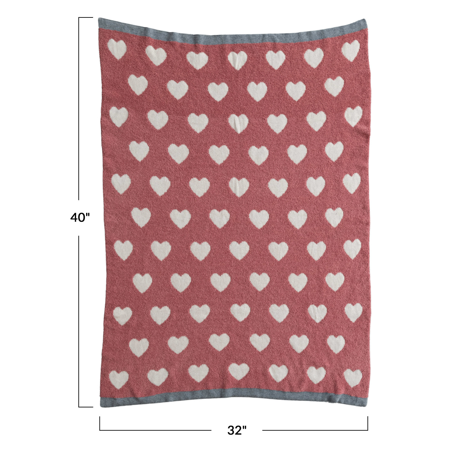Cotton Knit Chenille Baby Blanket w/ Hearts