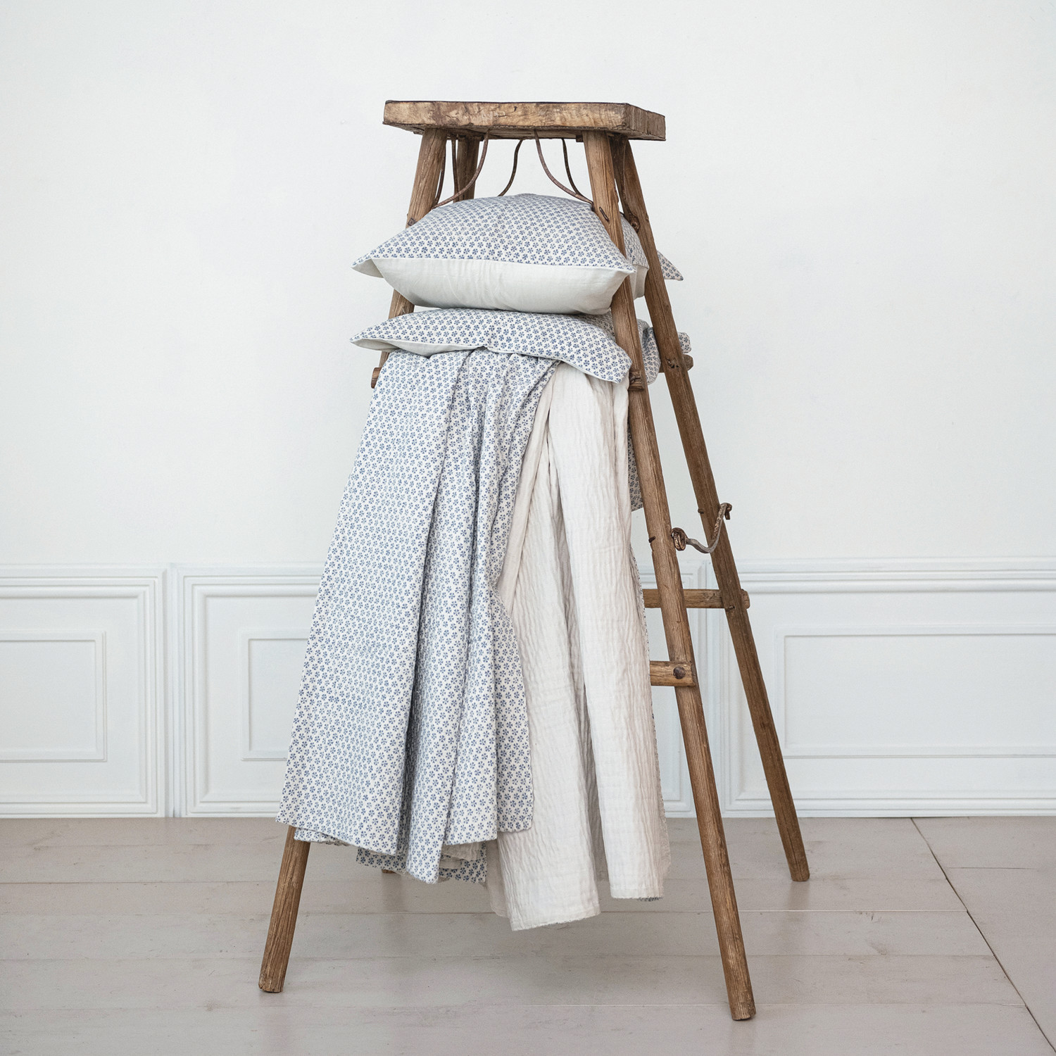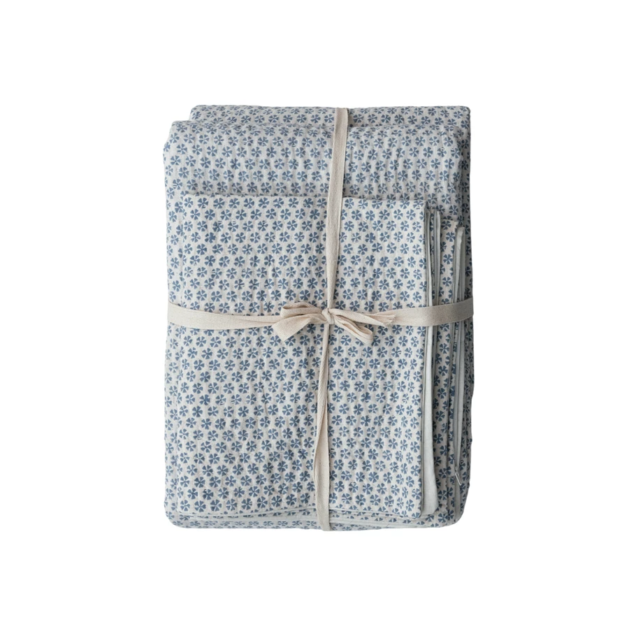 Cotton & Linen Voile Block Printed Bed Cover w/ 2 Shams, Queen, Set of 3