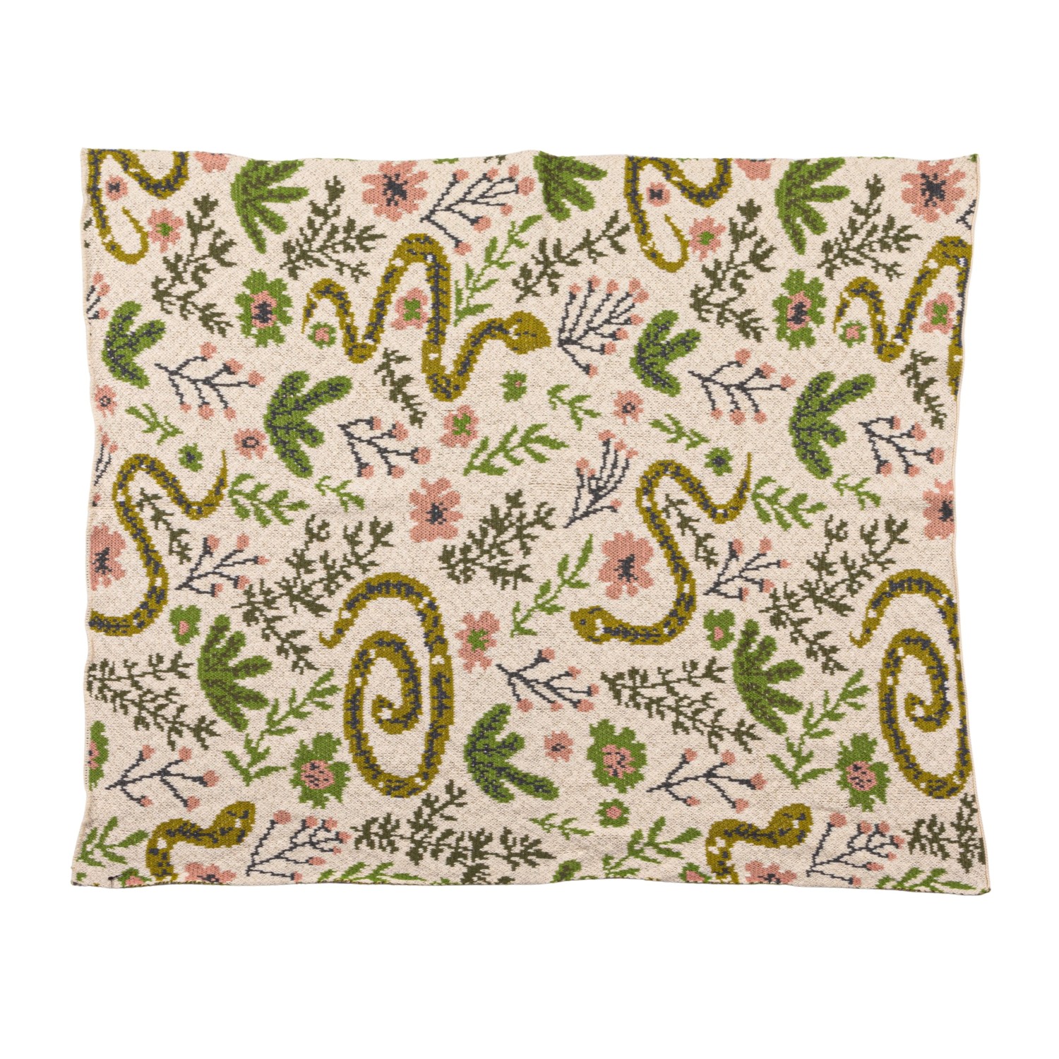 Catalog Name: 40"L x 32"W Cotton Knit Baby Blanket w/ Snakes & Florals, Multi Color
