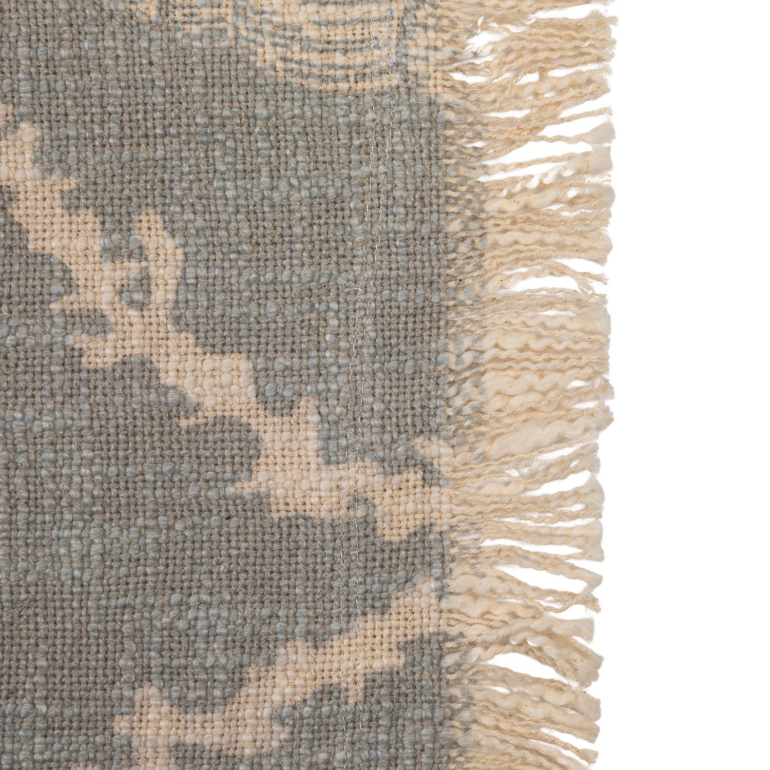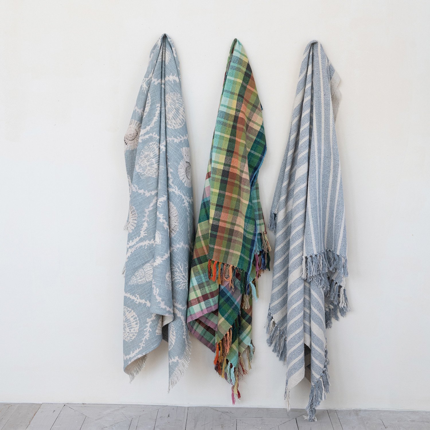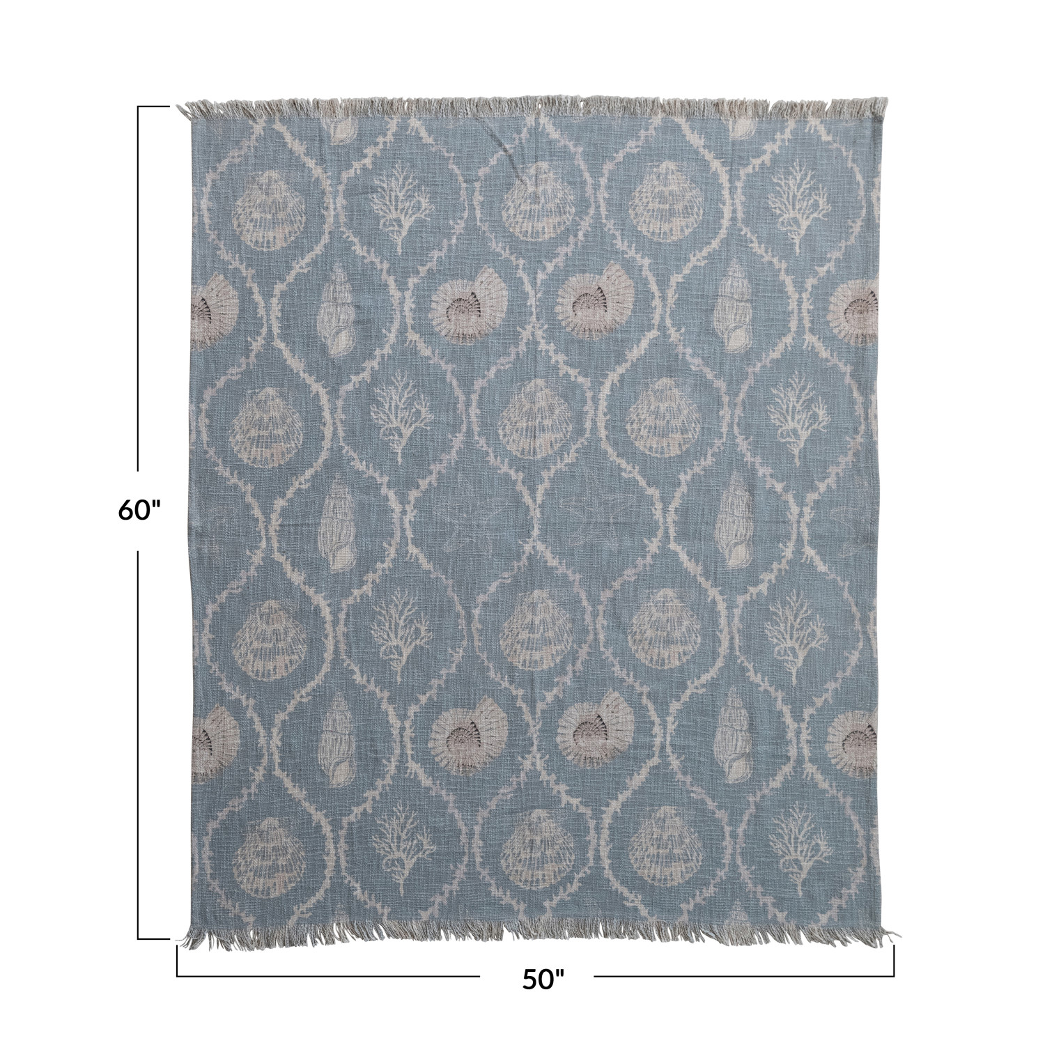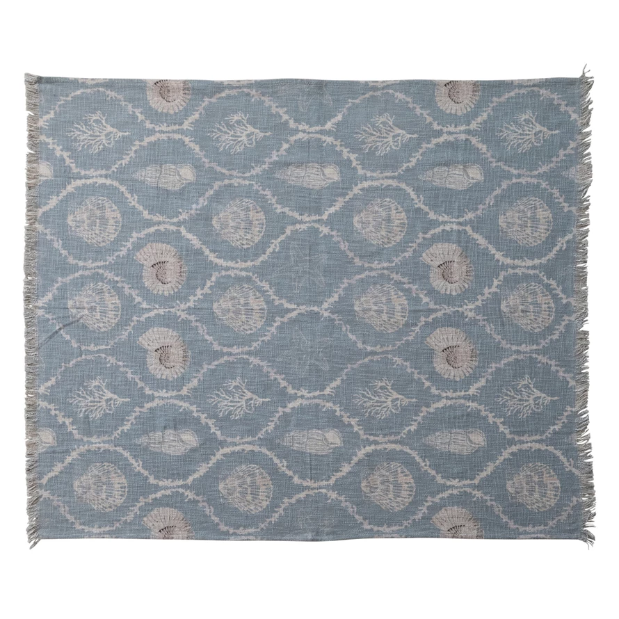Catalog Name: 60"L x 50"W Cotton Slub Throw w/ Coral & Shells Ogee Pattern, Blue & Natural