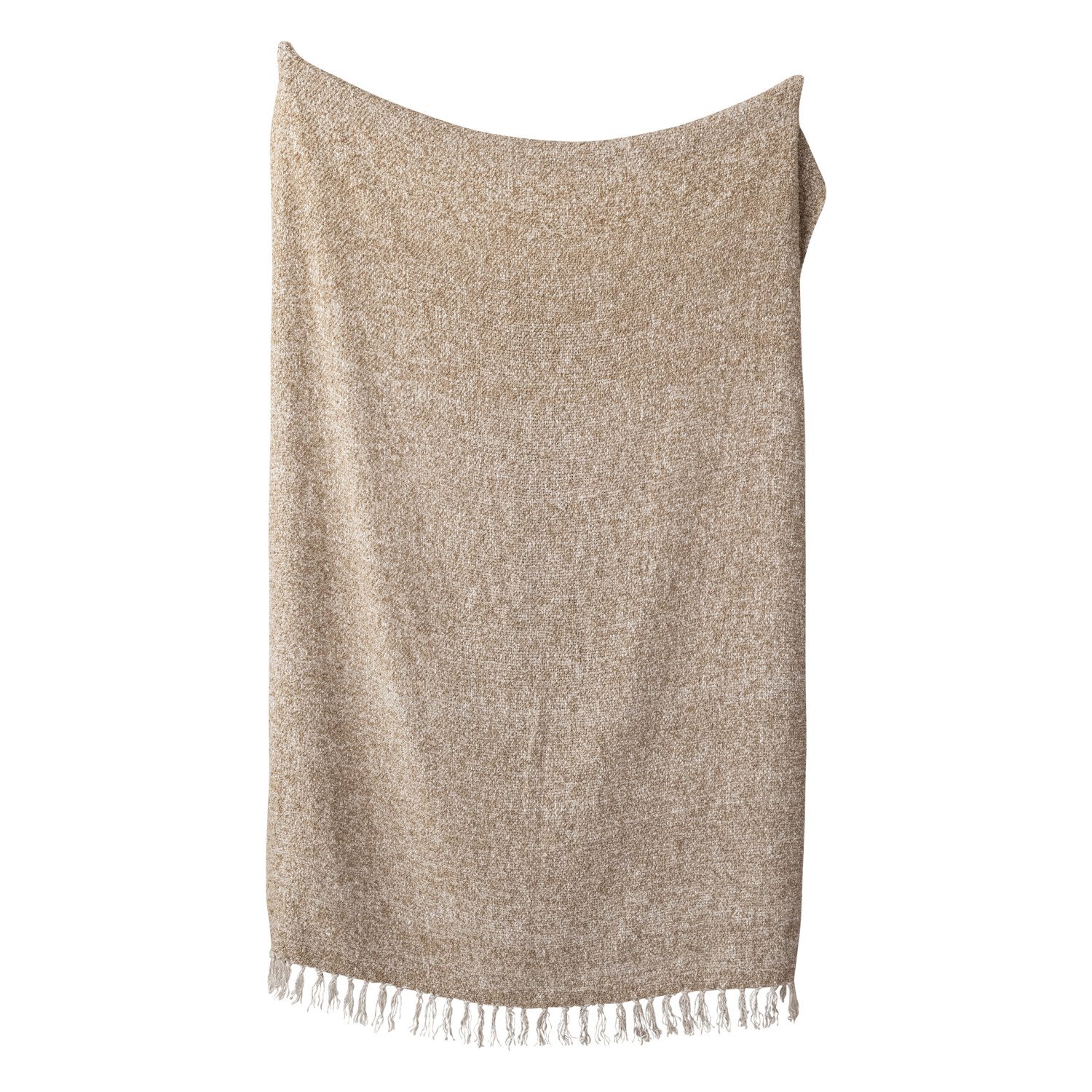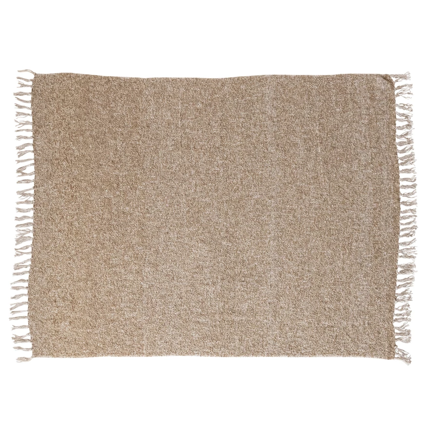 Woven Acrylic Blend Throw w/ Fringe, Brown & Natural