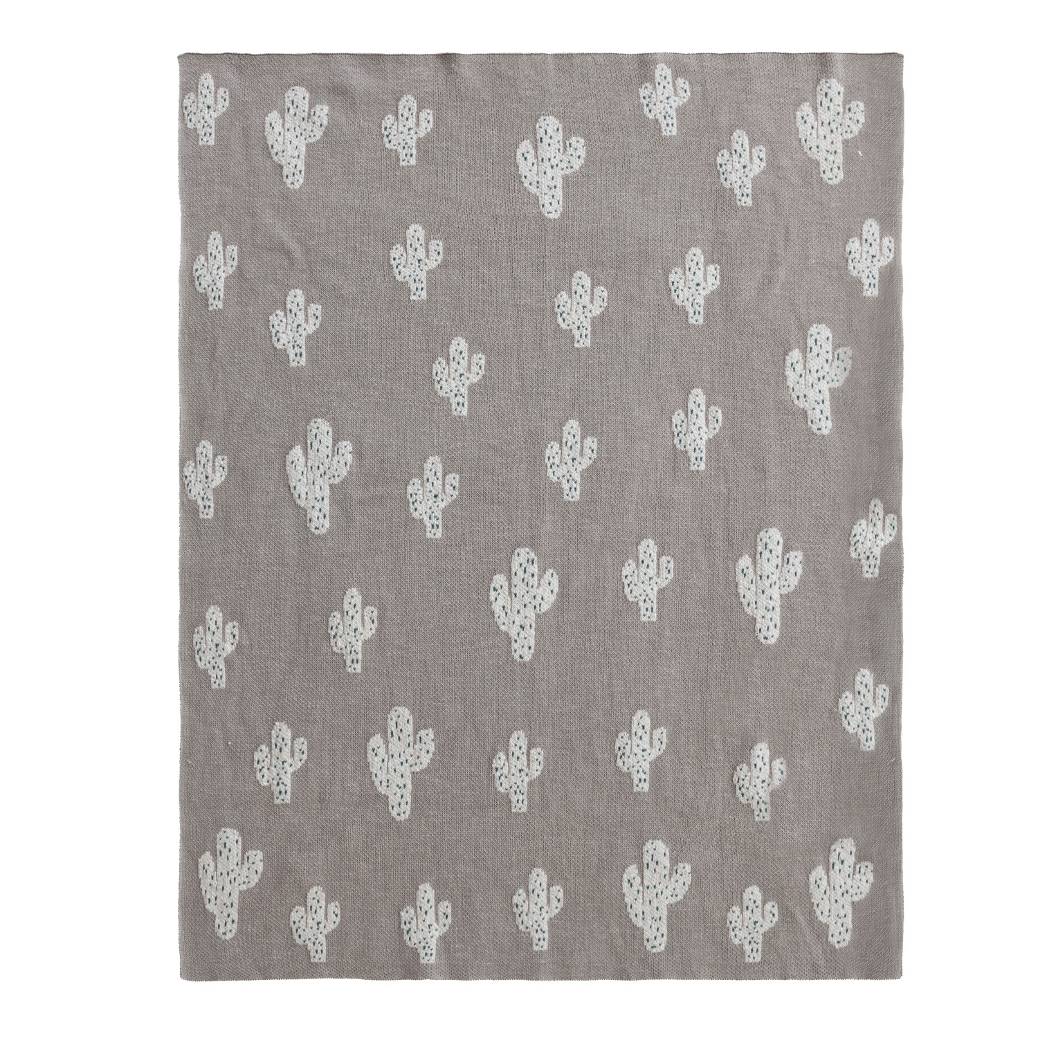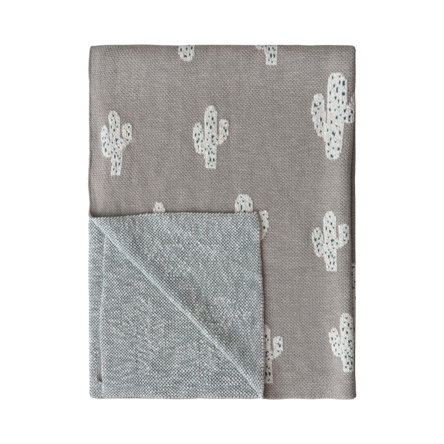 Catalog Name: 40"L x 32"W Cotton Knit Baby Blanket w/ Cacti, Multi Color