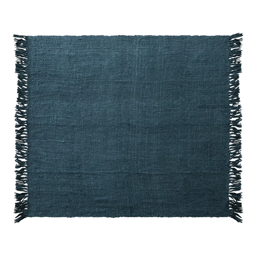 60"L x 50"W Woven Viscose Throw with Fringe, Navy Color