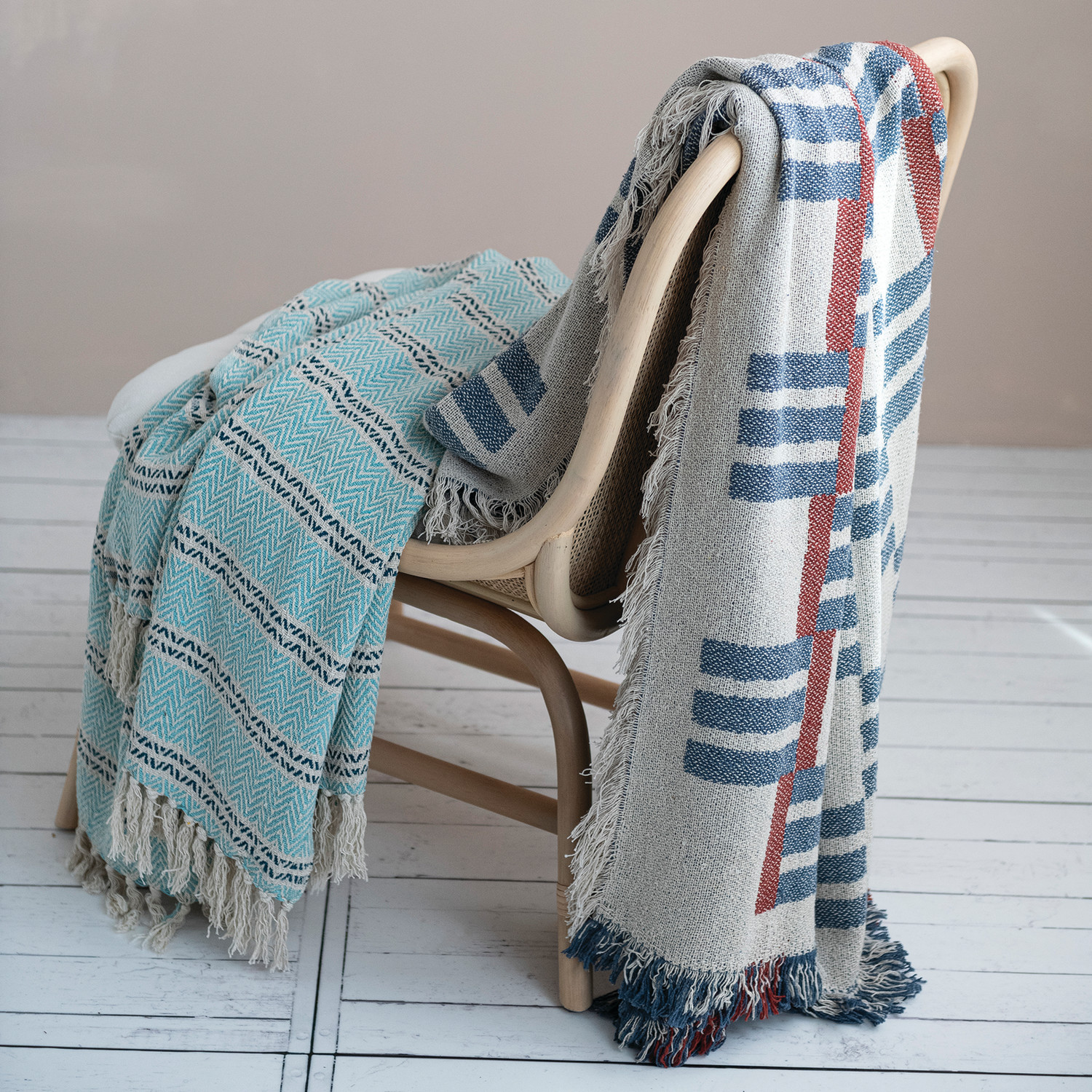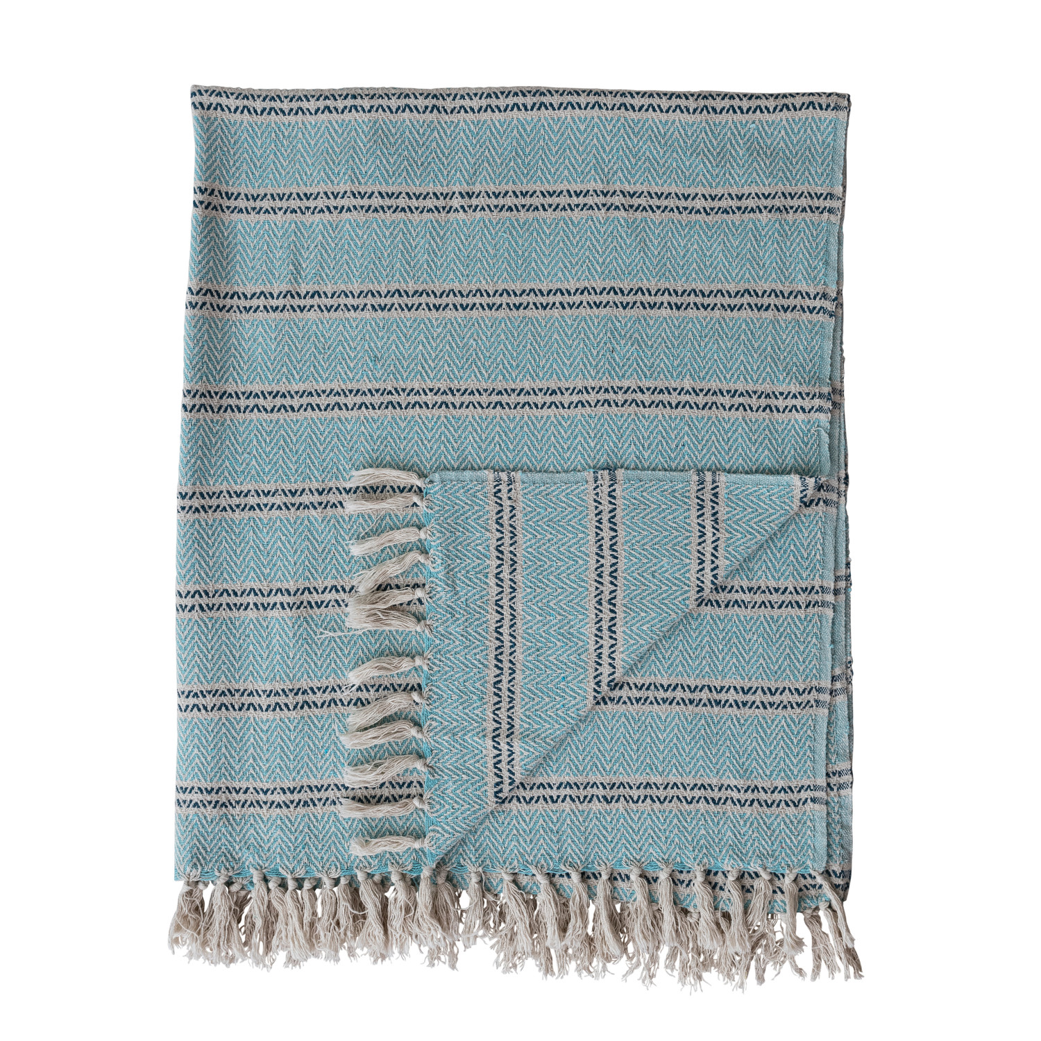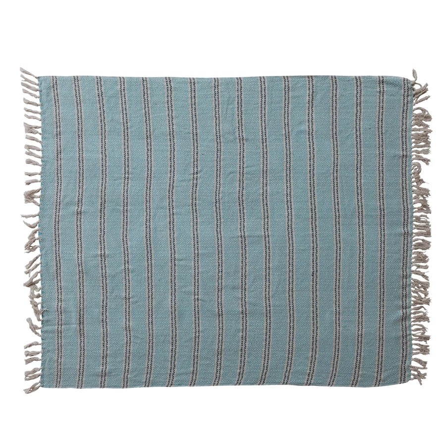 60"L x 50"W Woven Recycled Cotton Striped Throw with Fringe