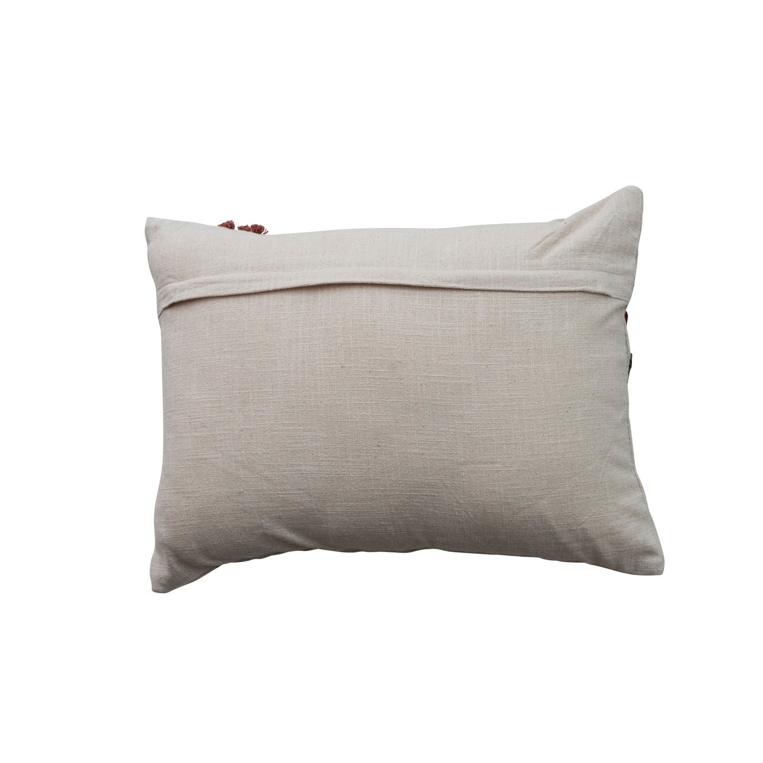 Catalog Name: 20"L x 14"H Cotton Slub Lumbar Pillow w/ Hand-Embroidered Flowers, Multi Color