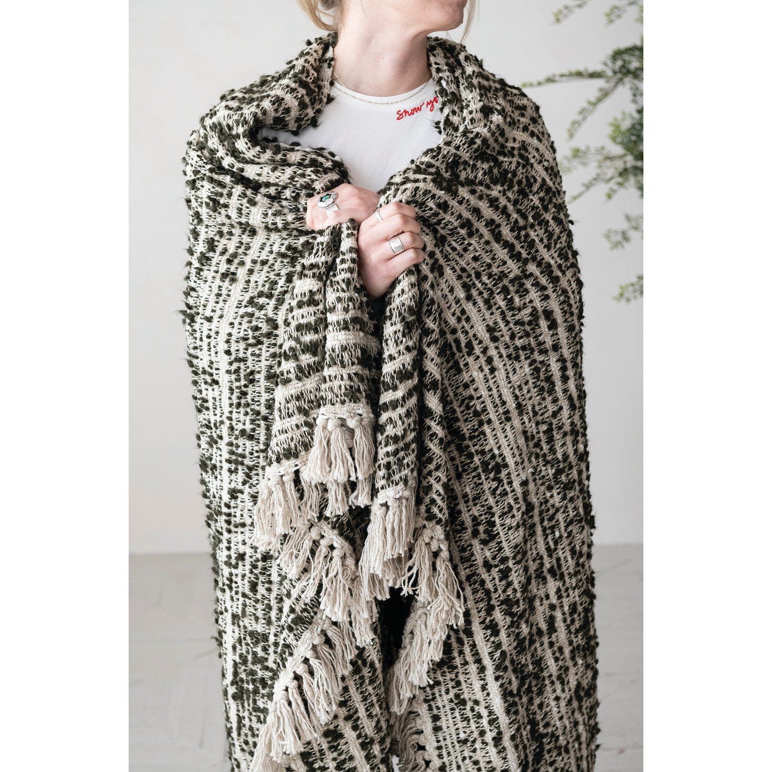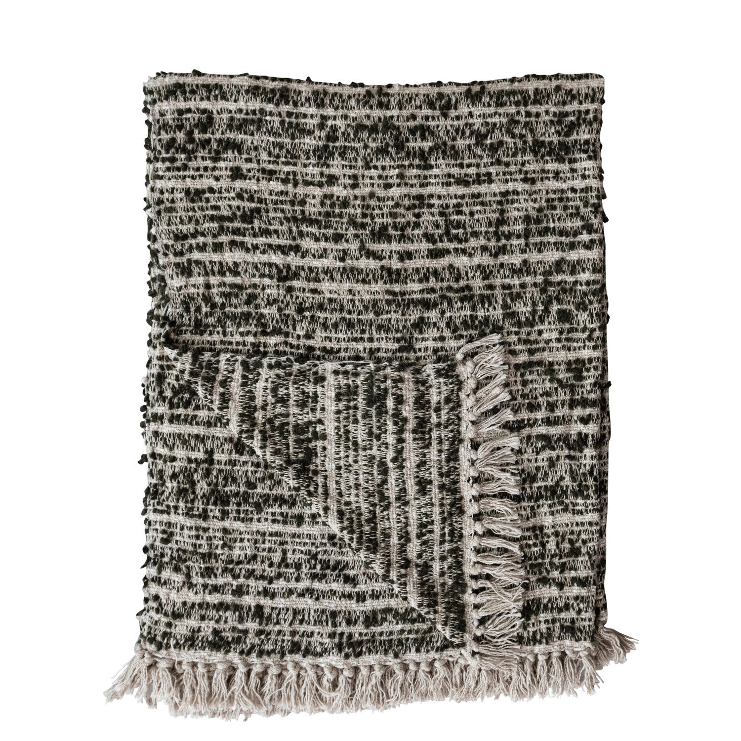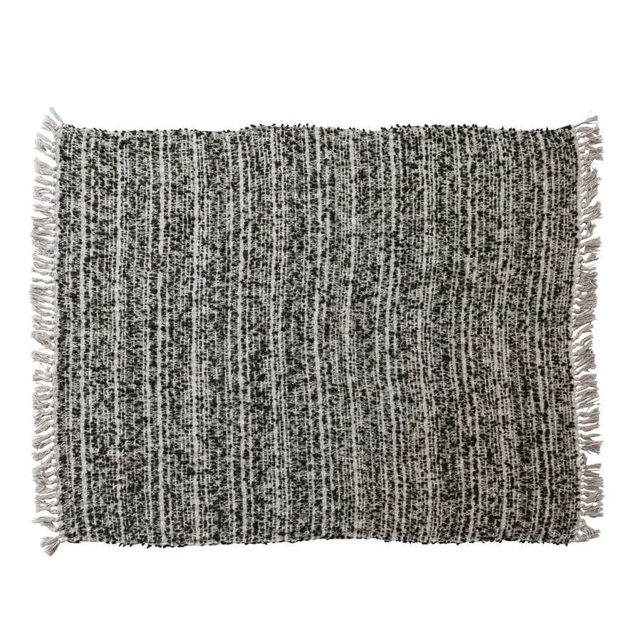 60"L x 50"W Woven Cotton & Acrylic Blend Throw with Fringe, Brown & Natural