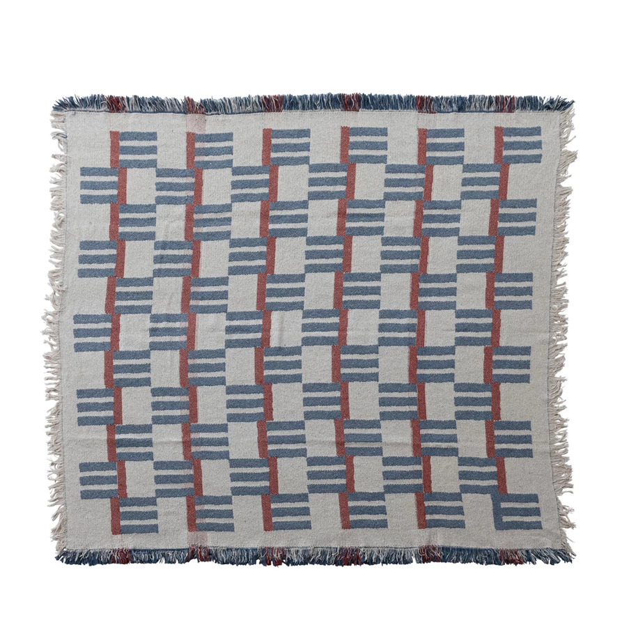 60"L x 50"W Woven Cotton Blend Jacquard Throw with Stripes/Block Pattern & Fringe