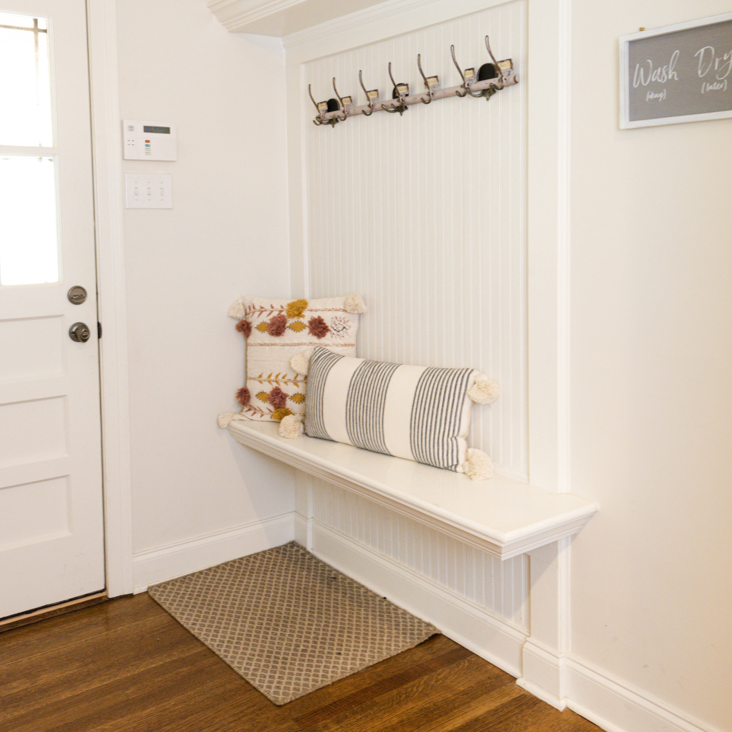 Multicolor cotton embroidered pillow with tassels and applique; Cover: Wool-Cotton Blend; Insert: 100% Polyester. Machine Wash Cold With Mesh Bag, Gentle Cycle, Do Not Bleach, Tumble Dry Low, Warm Iron If Needed.