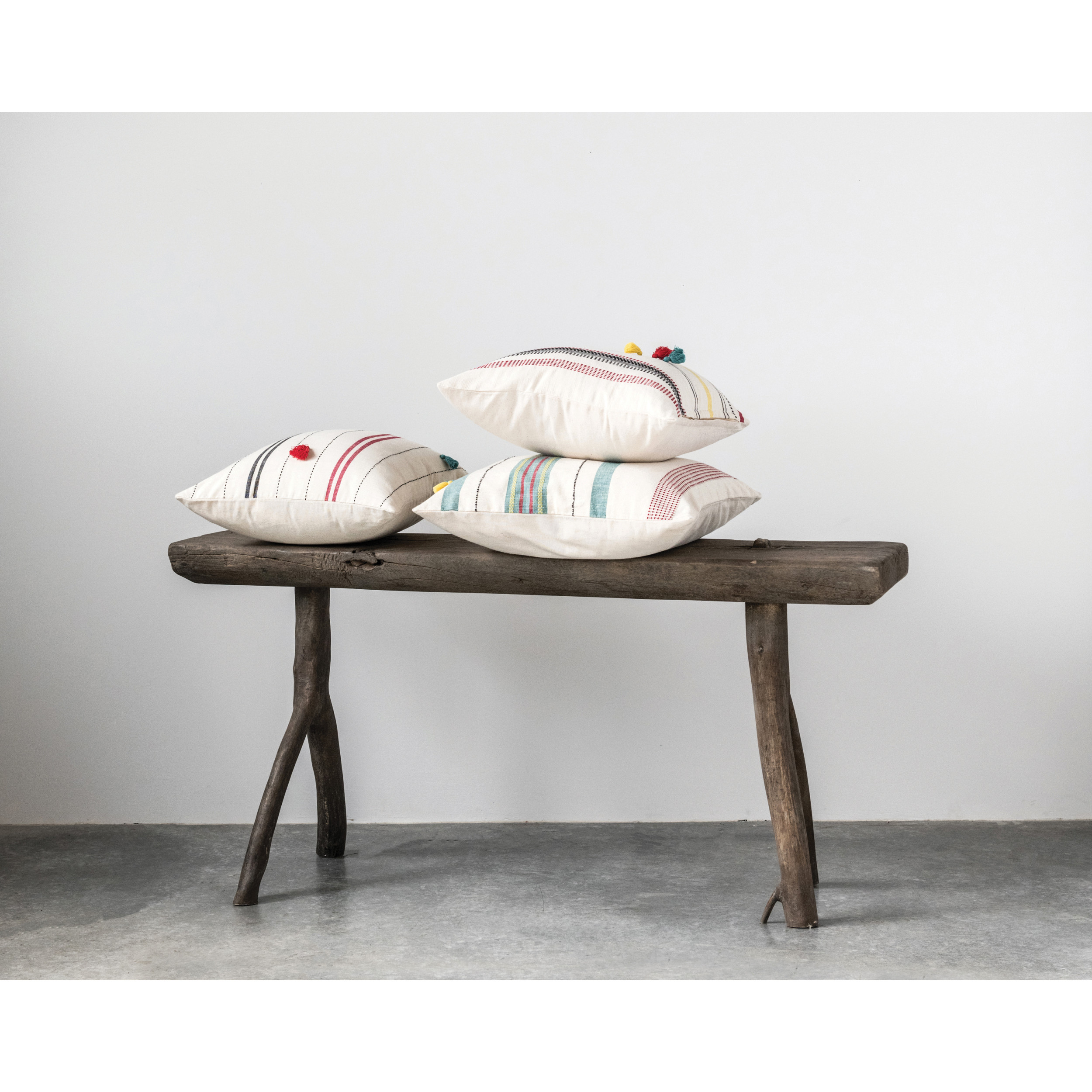Catalog Name: 16" Square Hand-Woven Cotton Striped Pillow w/ Tassels, Multi Color, 3 Styles