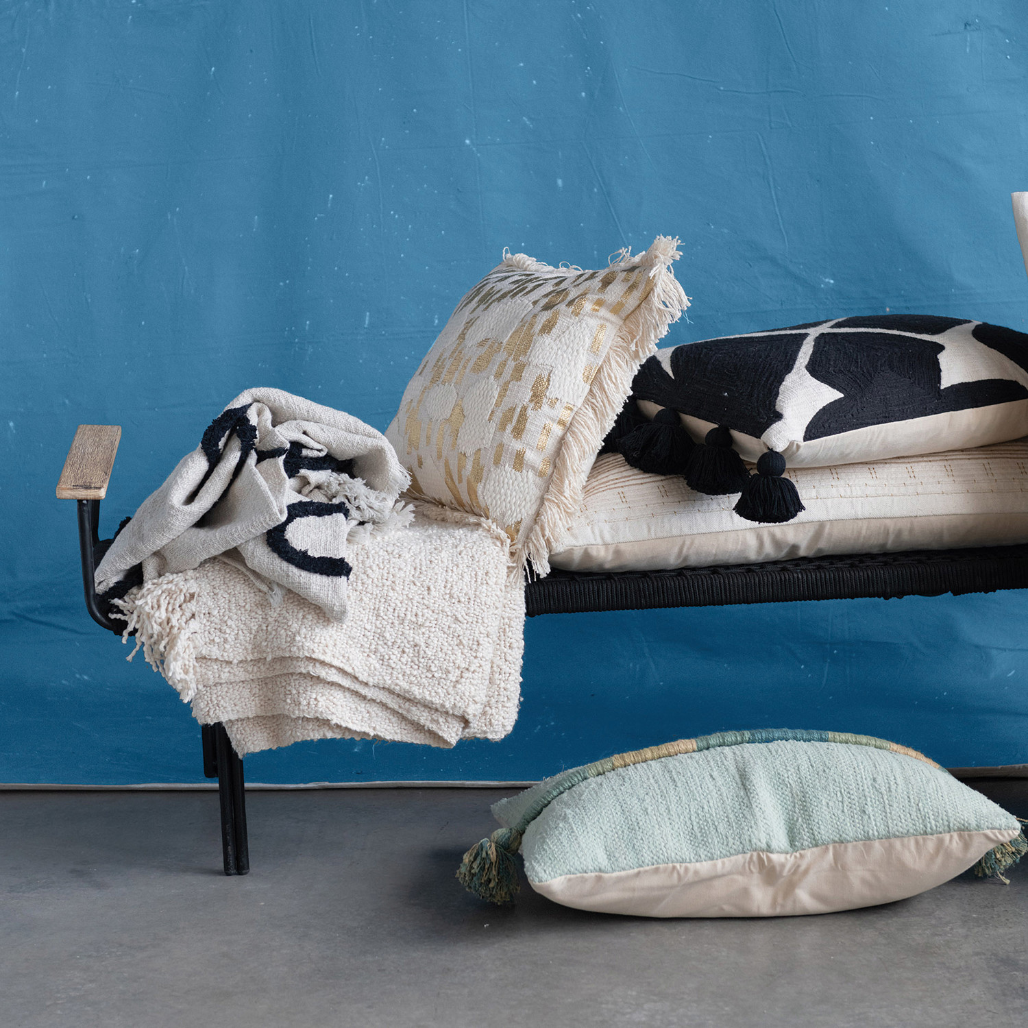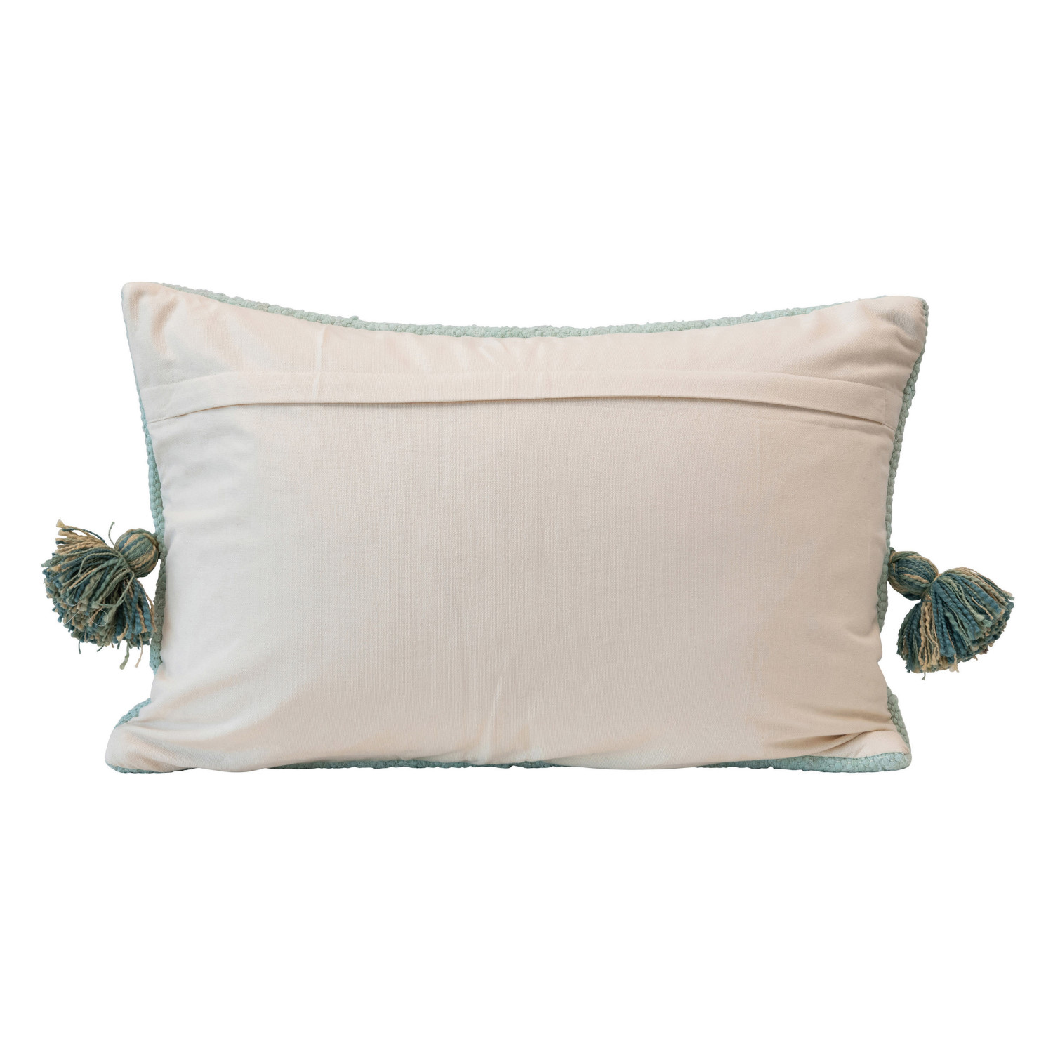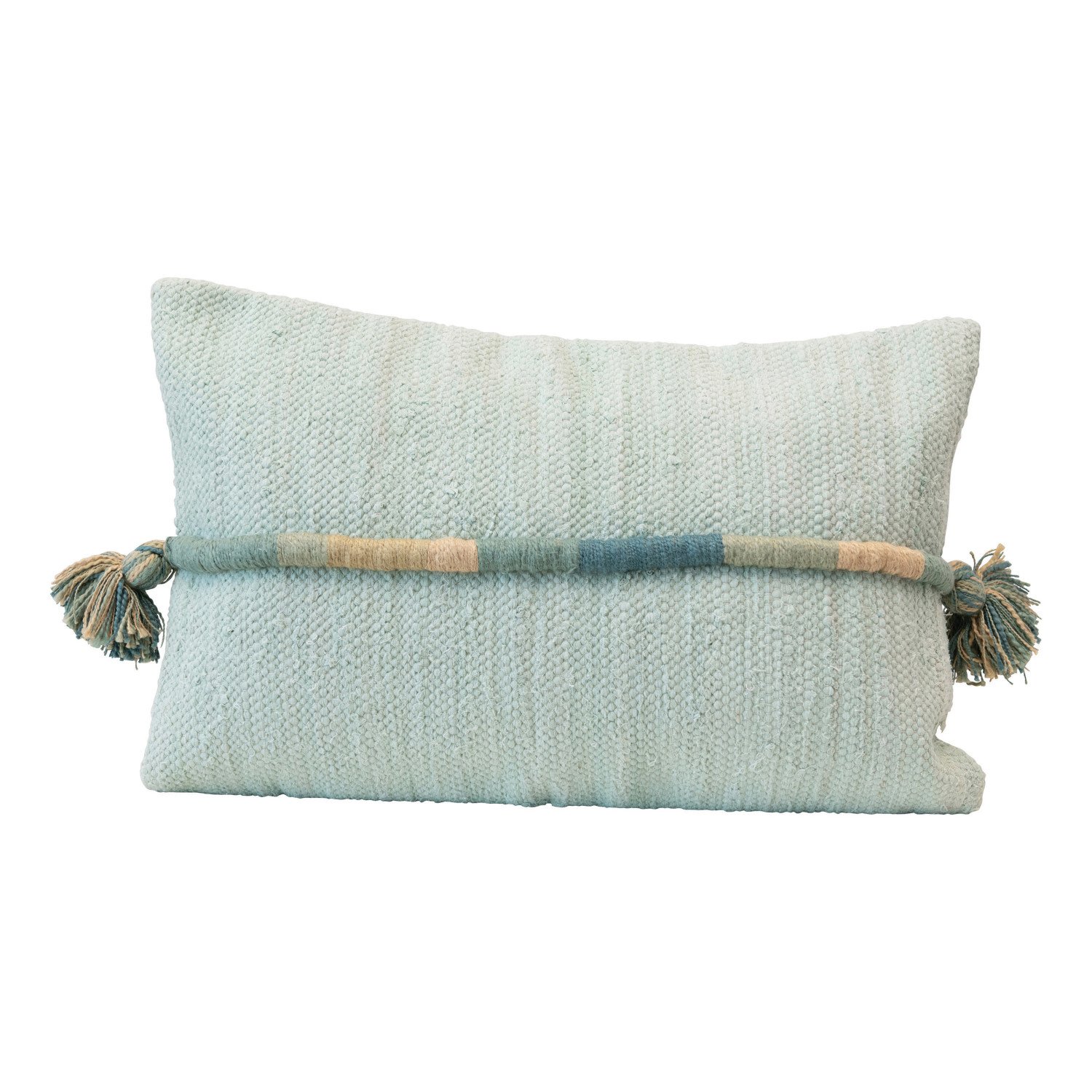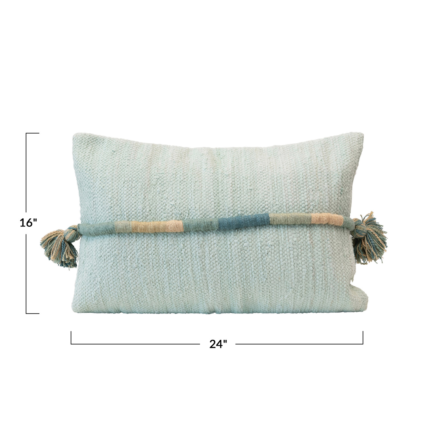 24" x 16" Woven Cotton Lumbar Pillow w/ Wrapped Appliqued Cord & Tassels, Polyester Fill