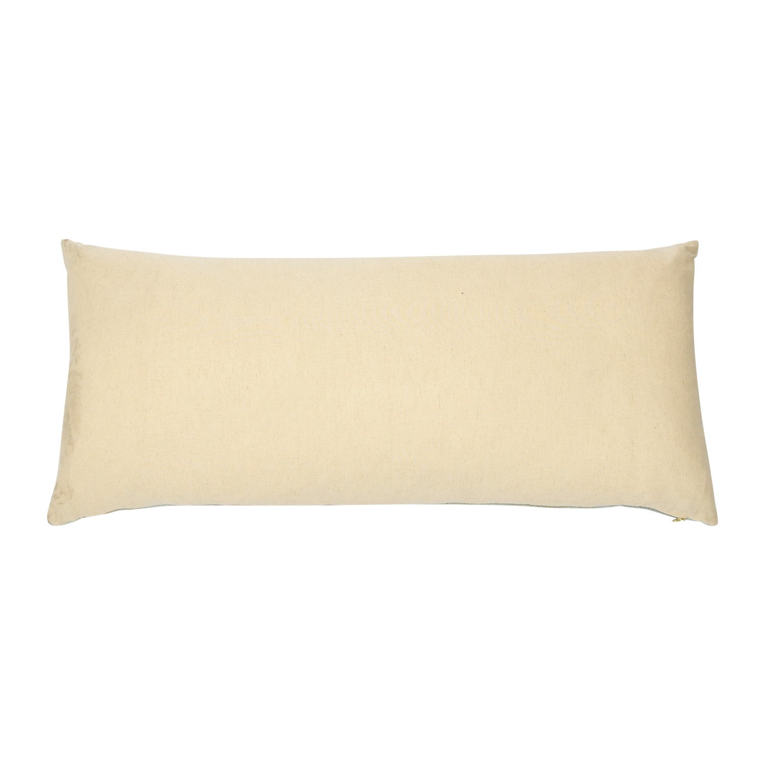 This one-of-a-kind lumbar pillow features intricate patchwork construction created from velvet, corduroy, chenille, and cotton slub. Multicolor patchwork cotton lumbar pillow; Natural cotton encasement on back. Express your constantly evolving style with the simple addition of this eye-catching pillow. Removable lumbar pillow cover and insert; Hidden in seam zipper closure; Machine wash cold, gentle cycle, do not bleach, warm iron if needed.