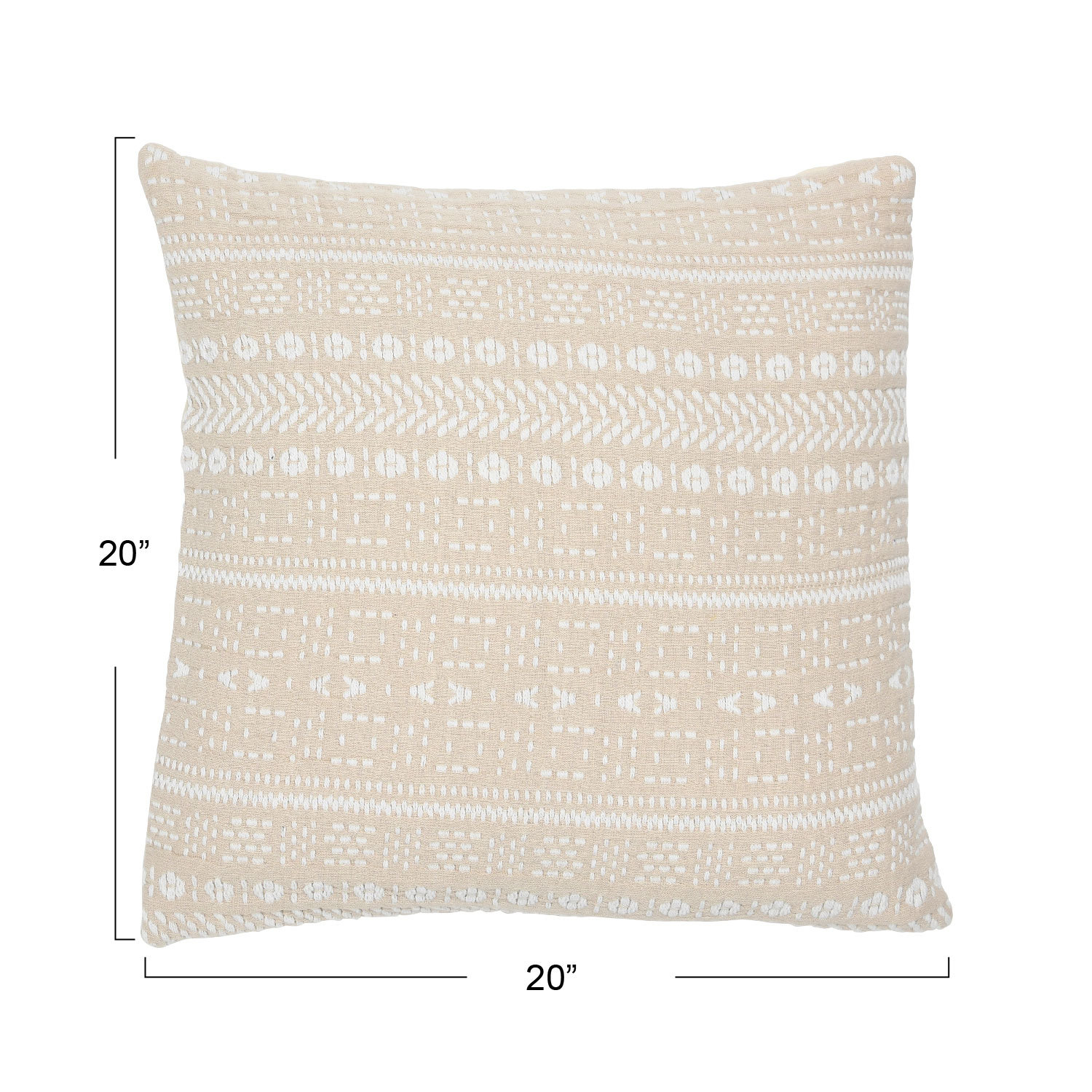 Catalog Name: 20" Square Woven Cotton Embroidered Pillow, Beige & Cream Color