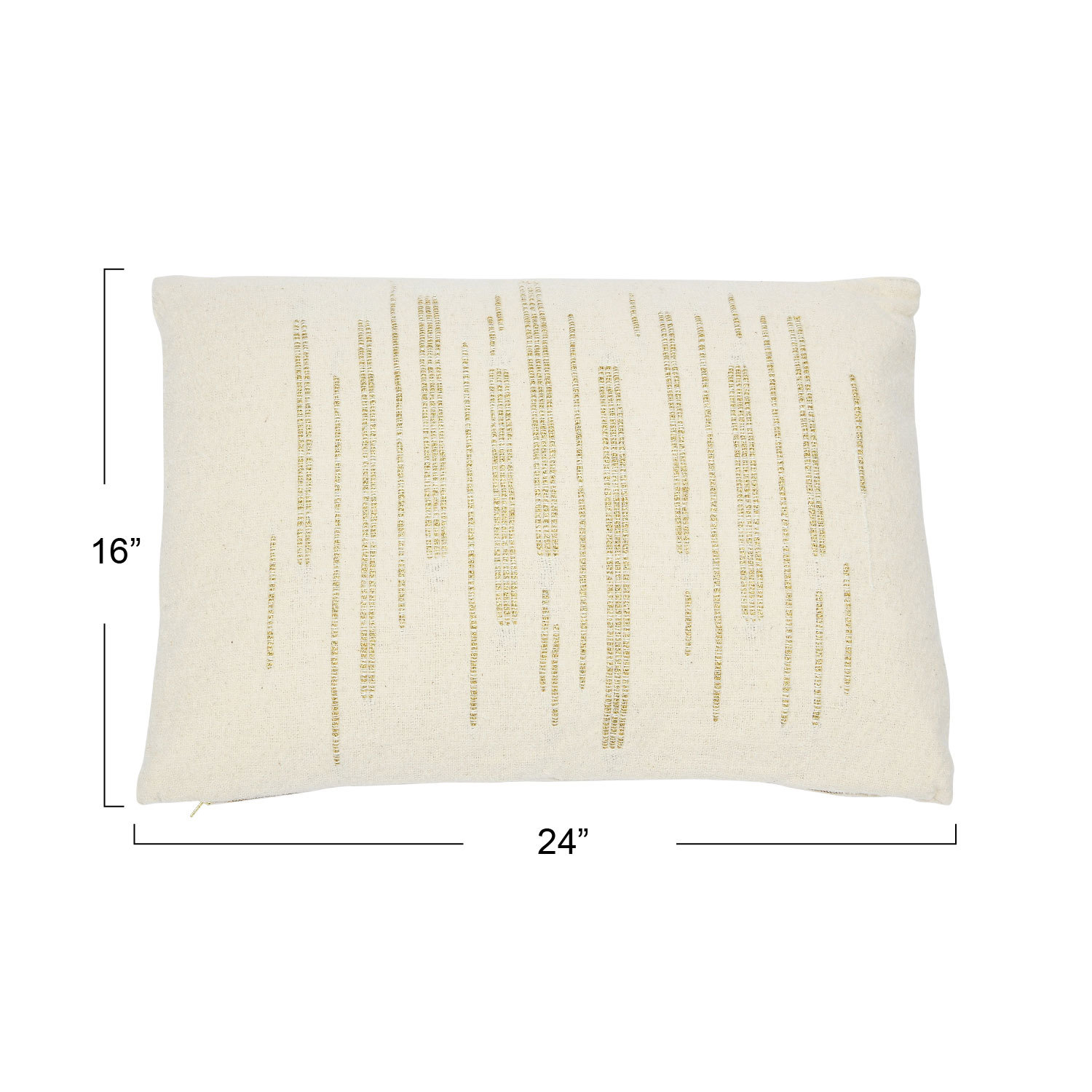 Catalog Name: 24"L x 16"H Woven Cotton Slub Lumbar Pillow w/ Gold Metallic Thread Embroidery, Cream Color