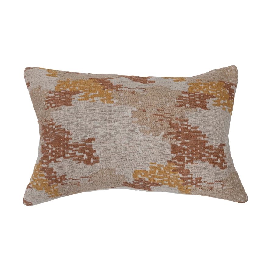 This transitional cotton lumbar pillow cover showcases bold, abstract jacquard embroidery. Multicolor cotton lumbar pillow with jacquard embroidery; Natural cotton encasement on back. Express your constantly evolving style with the simple addition of this eye-catching pillow. Removable lumbar pillow cover with polyester insert; Back zipper with hidden flap; Machine wash cold, gentle cycle, do not bleach, warm iron if needed.