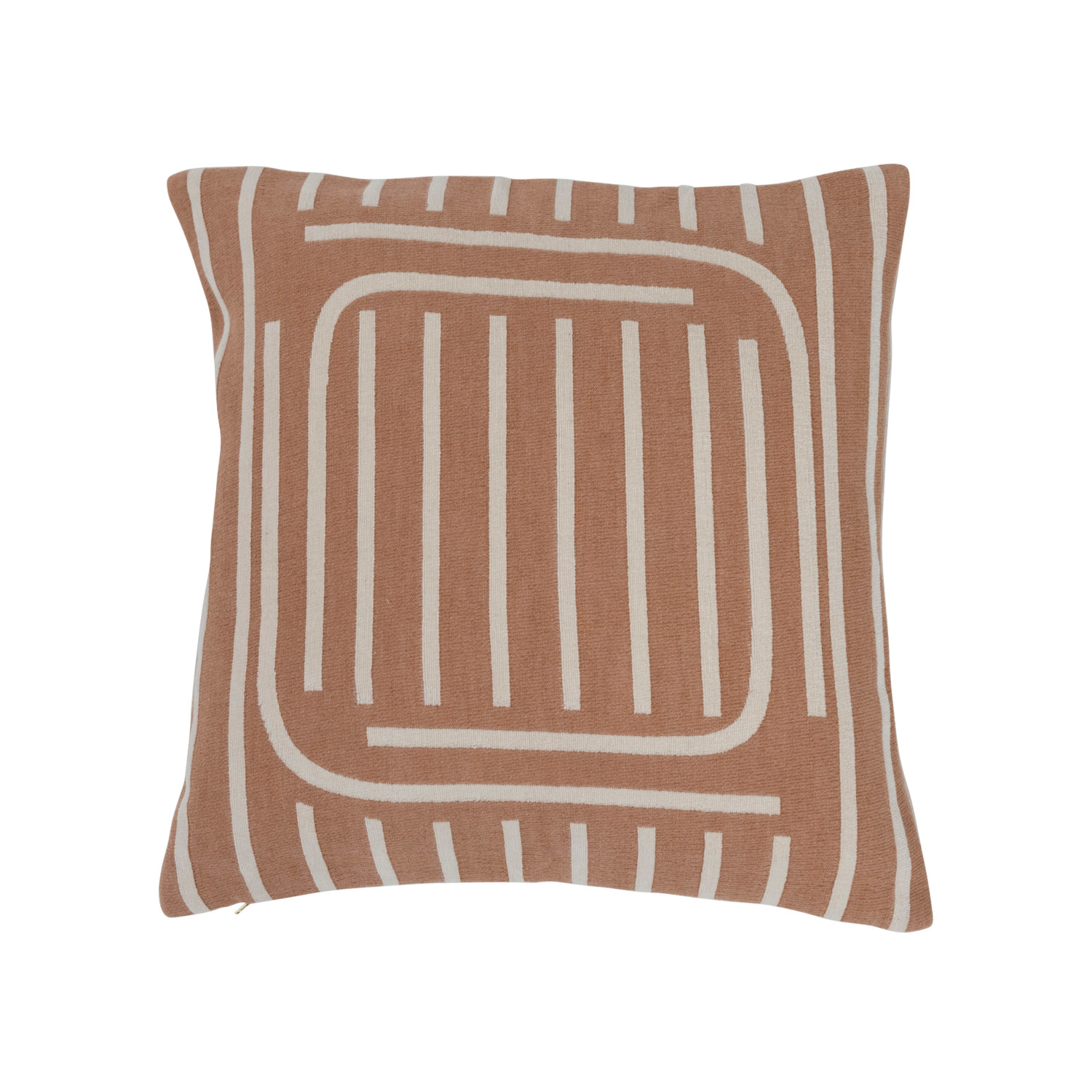 This contemporary throw pillow cover features a geometric line print on durable woven cotton. Square putty and cream cotton throw pillow with geometric line print; Inverse print on back. Express your constantly evolving style with the simple addition of this eye-catching pillow. Removable cotton throw pillow cover with polyester insert; Hidden in seam zipper closure; Machine wash cold, gentle cycle, do not bleach, warm iron if needed.
