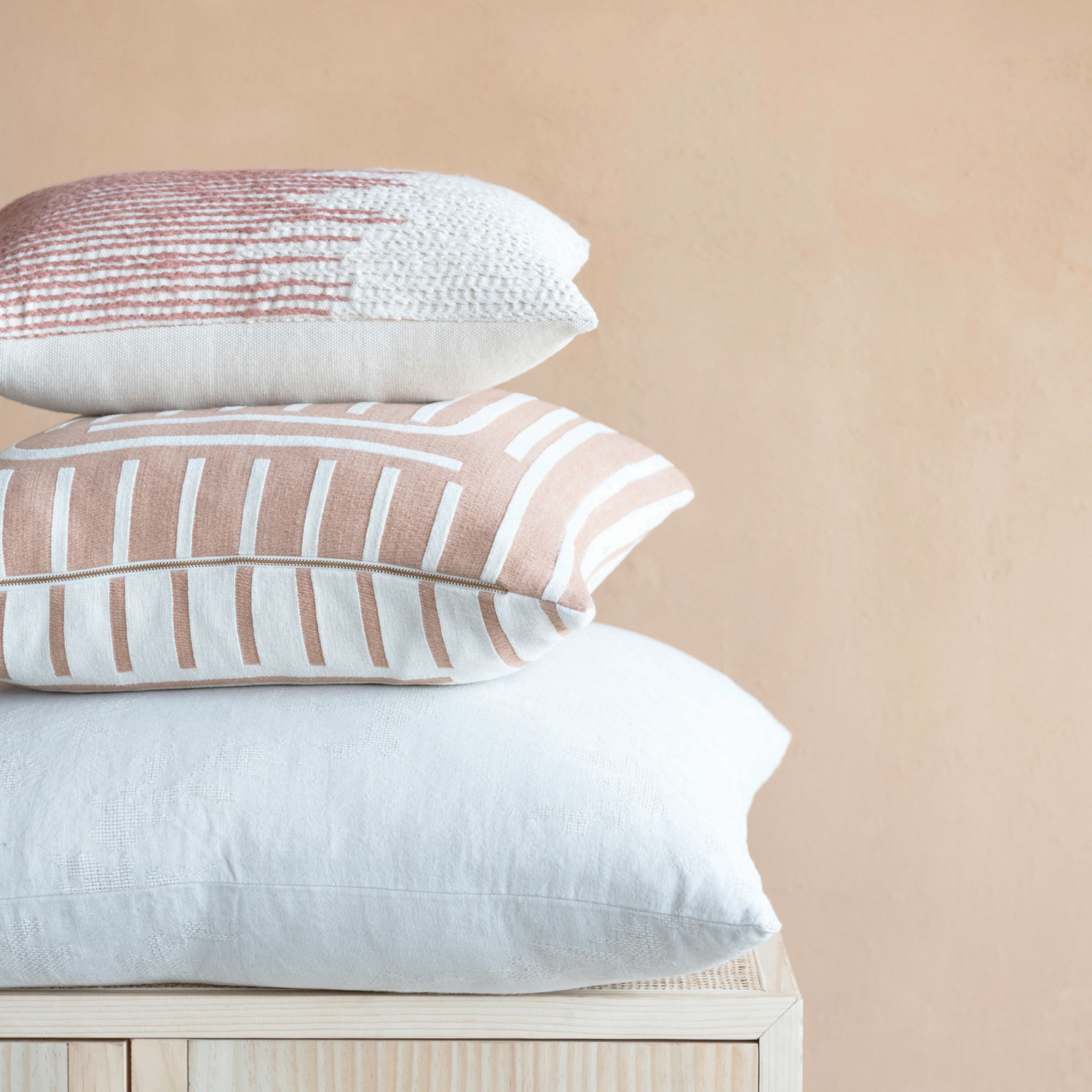 Catalog Name: 20" Square Woven Cotton Reversible Pillow w/ Lines, Putty & Cream Color