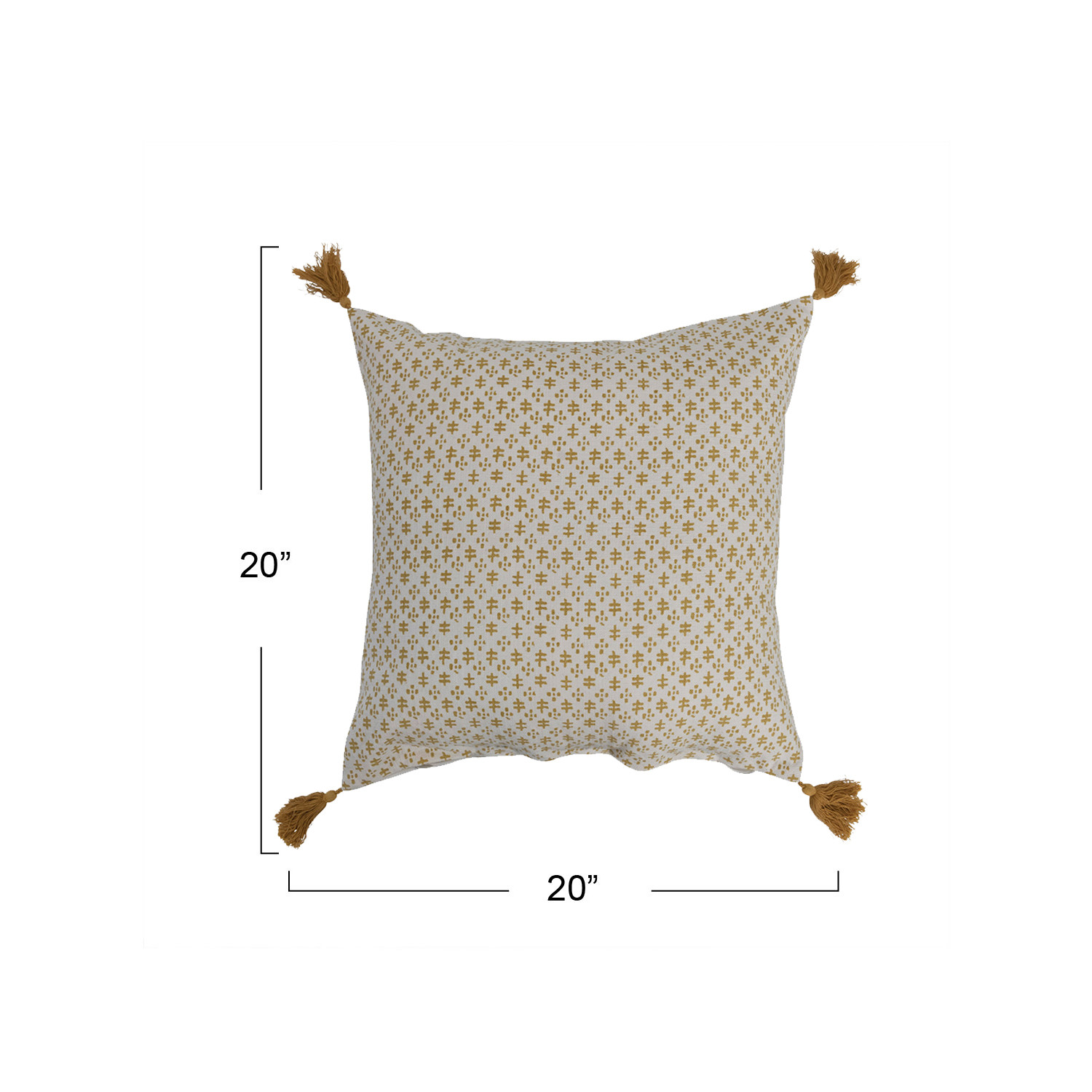 Catalog Name: 20" Square Cotton Pillow w/ Pattern & Tassels, Cream & Mustard Color