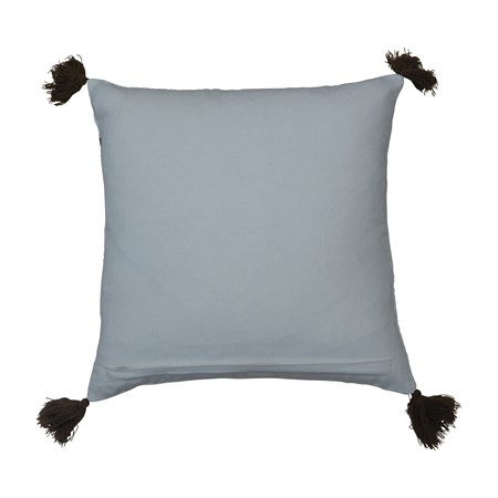 16" Cotton Pillow with Metallic Printed Floral Pattern & Eyelash Fringe