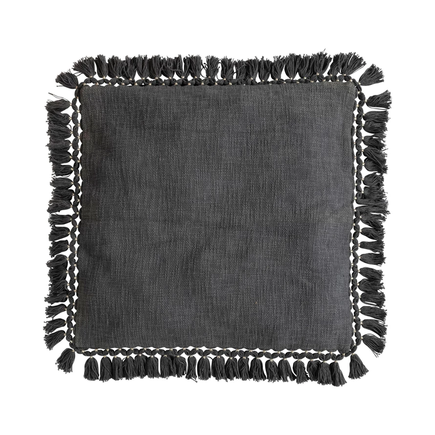 Catalog Name: 20" Square Cotton Slub Pillow w/ Gold Thread Wrapped Tassels, Charcoal Color