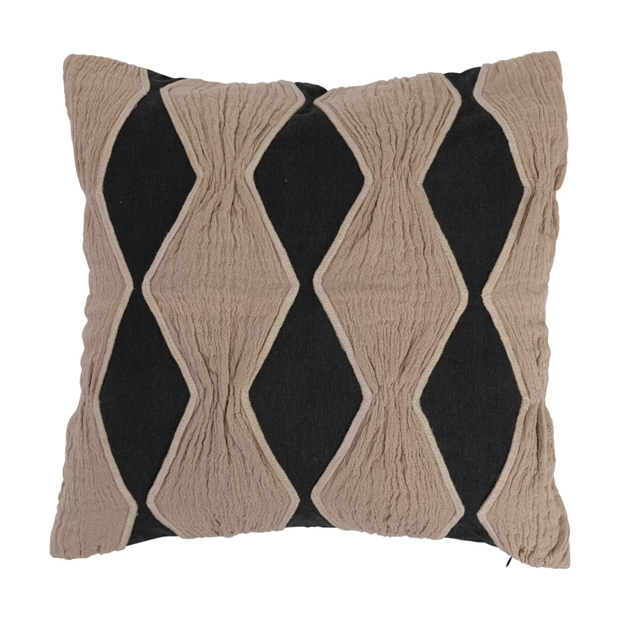 Catalog Name: 18" Square Cotton Pillow w/ Applique & Diamond Pattern, Charcoal & Tan Color