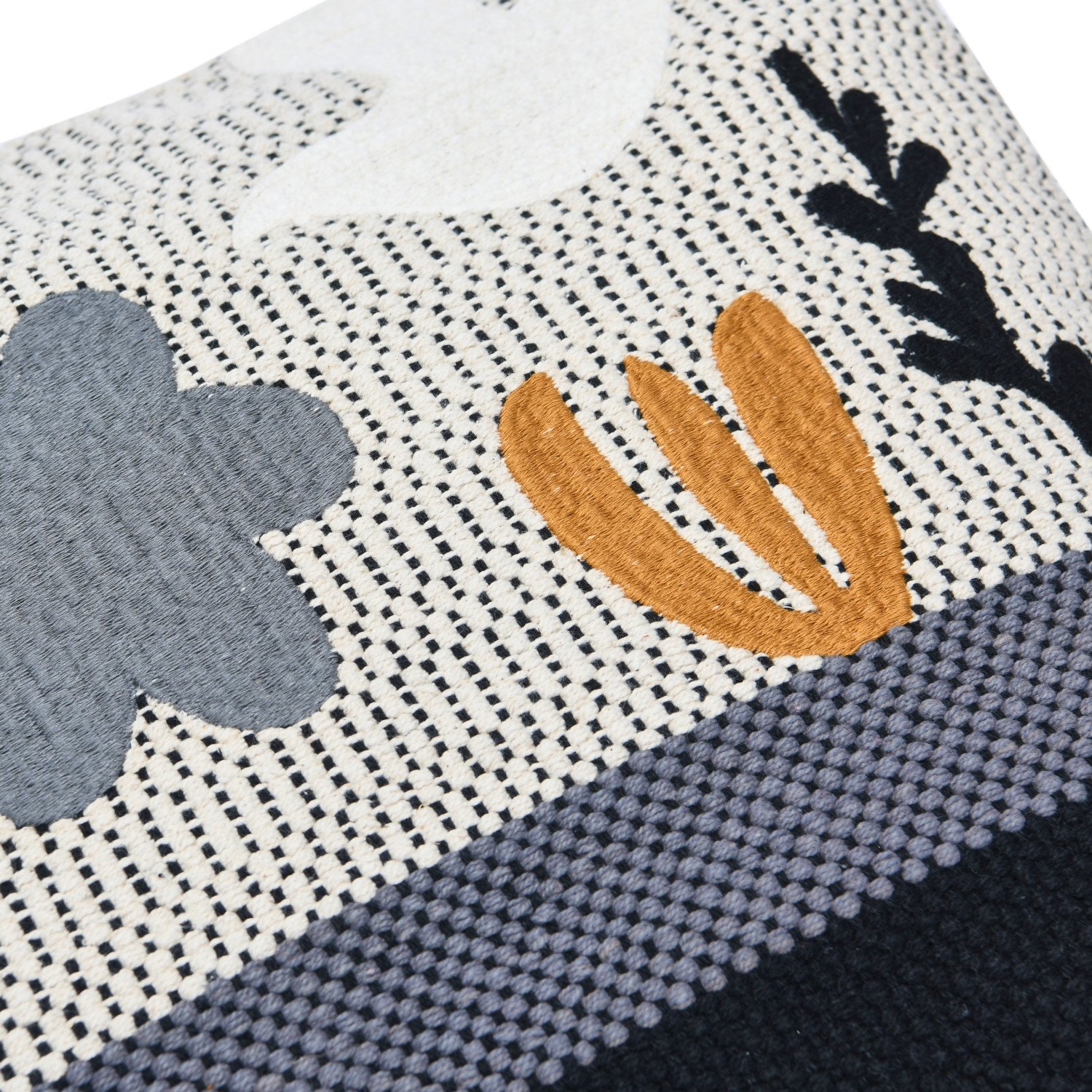 This modern, southwestern-inspired throw pillow cover showcases a woven cotton construction with a bold, embroidered bird and flora design. Square multicolor cotton throw pillow with bird and flower print; Cream cotton encasement on back. Express your constantly evolving style with the simple addition of this eye-catching pillow. Removable cotton throw pillow cover with polyester insert; Machine wash warm, gentle cycle, do not bleach, do not tumble dry, do not dry clean, medium iron.