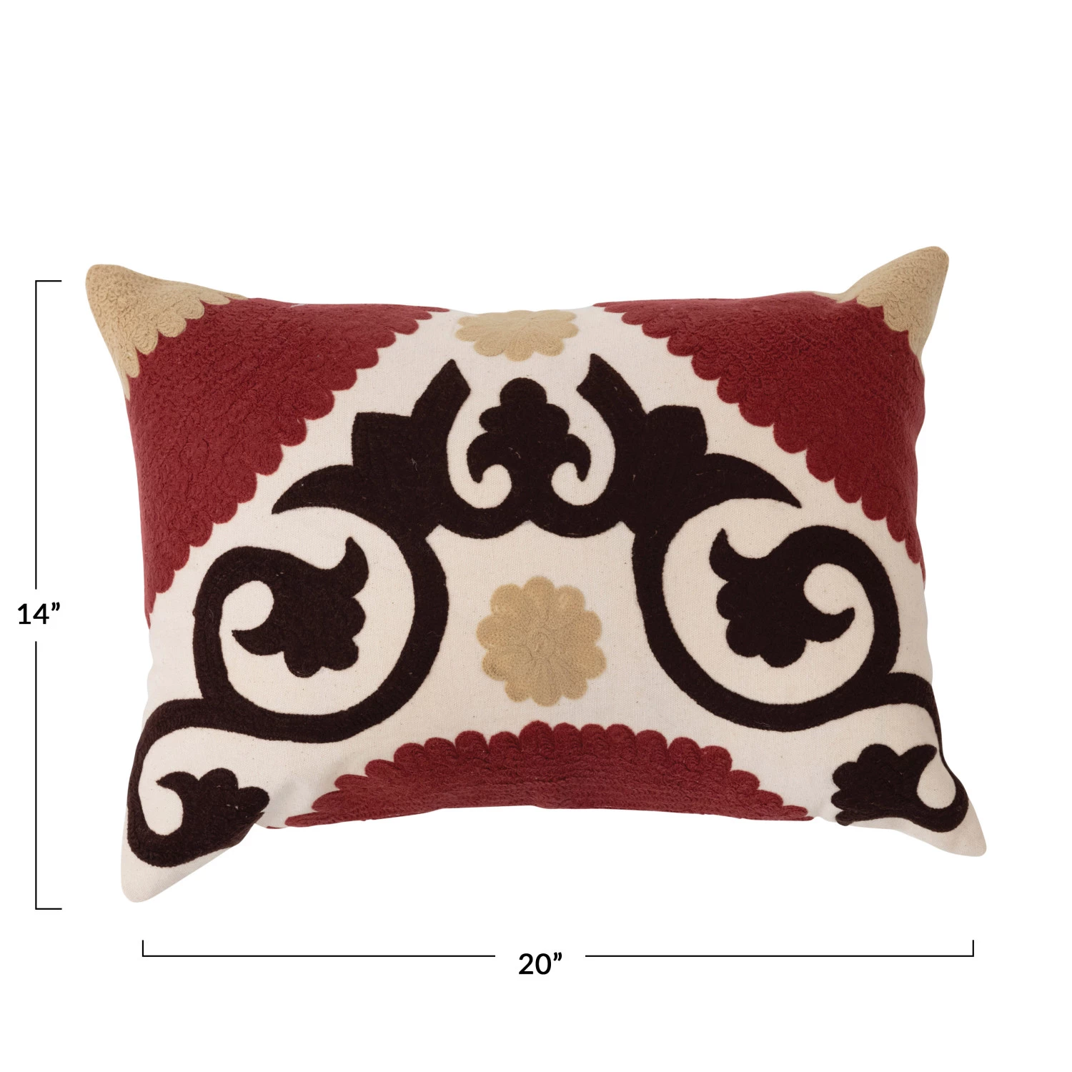Catalog Name: 20"L x 14"H Cotton Embroidered Lumbar Pillow w/ Suzani, Multi Color