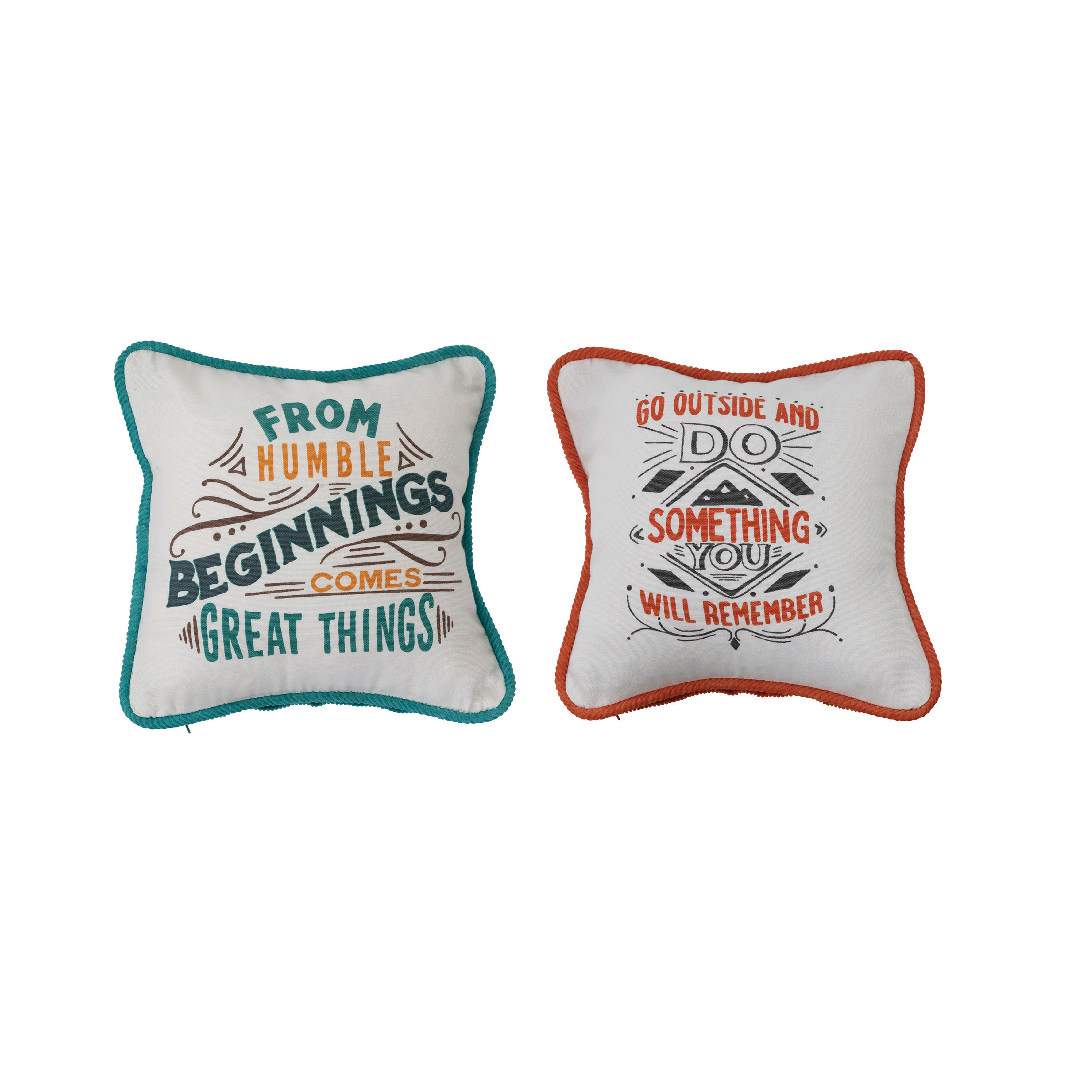 12" Cotton Pillow with Saying, Cord Piping & Back, 2 Styles