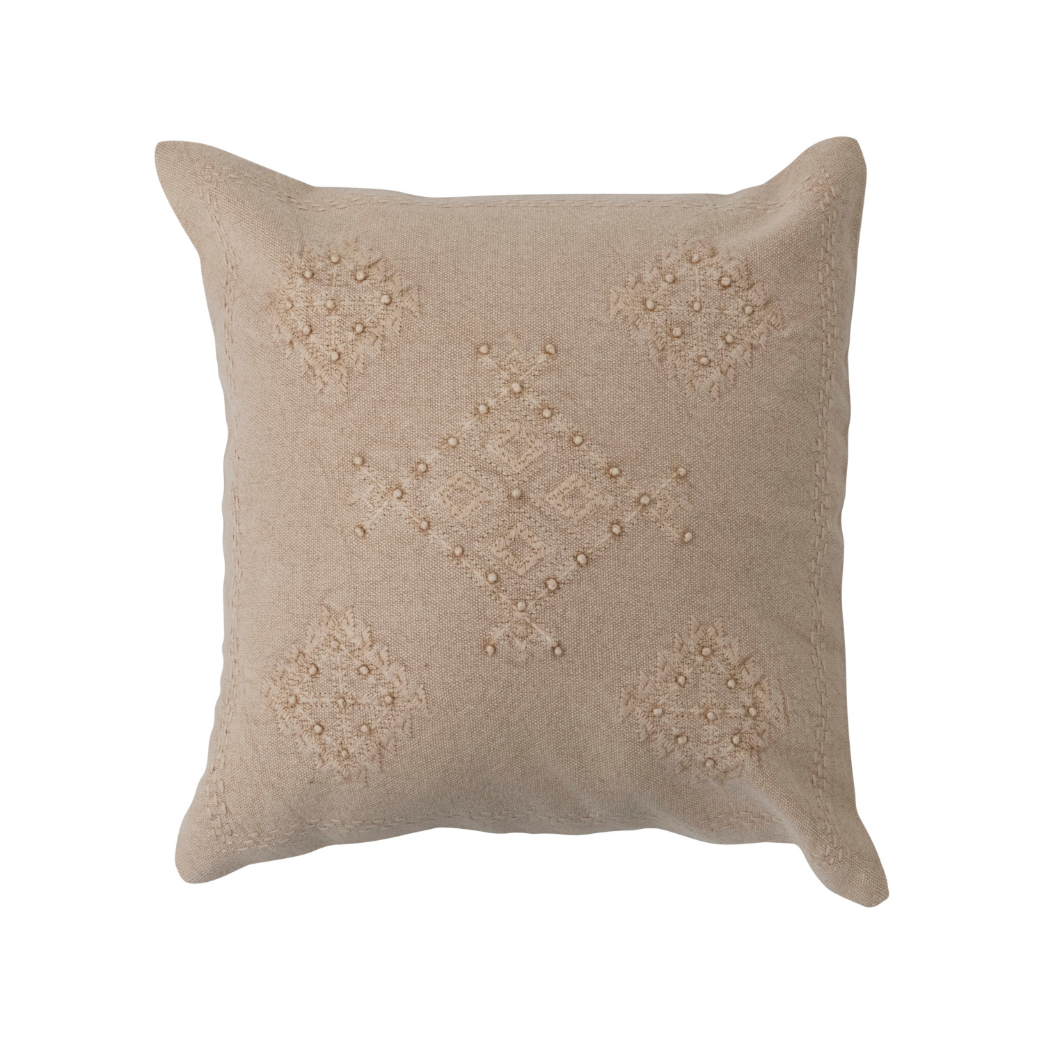 Catalog Name: 18" Square Woven Cotton Pillow w/ Embroidery & French Knots, Polyester Fill, Linen Color