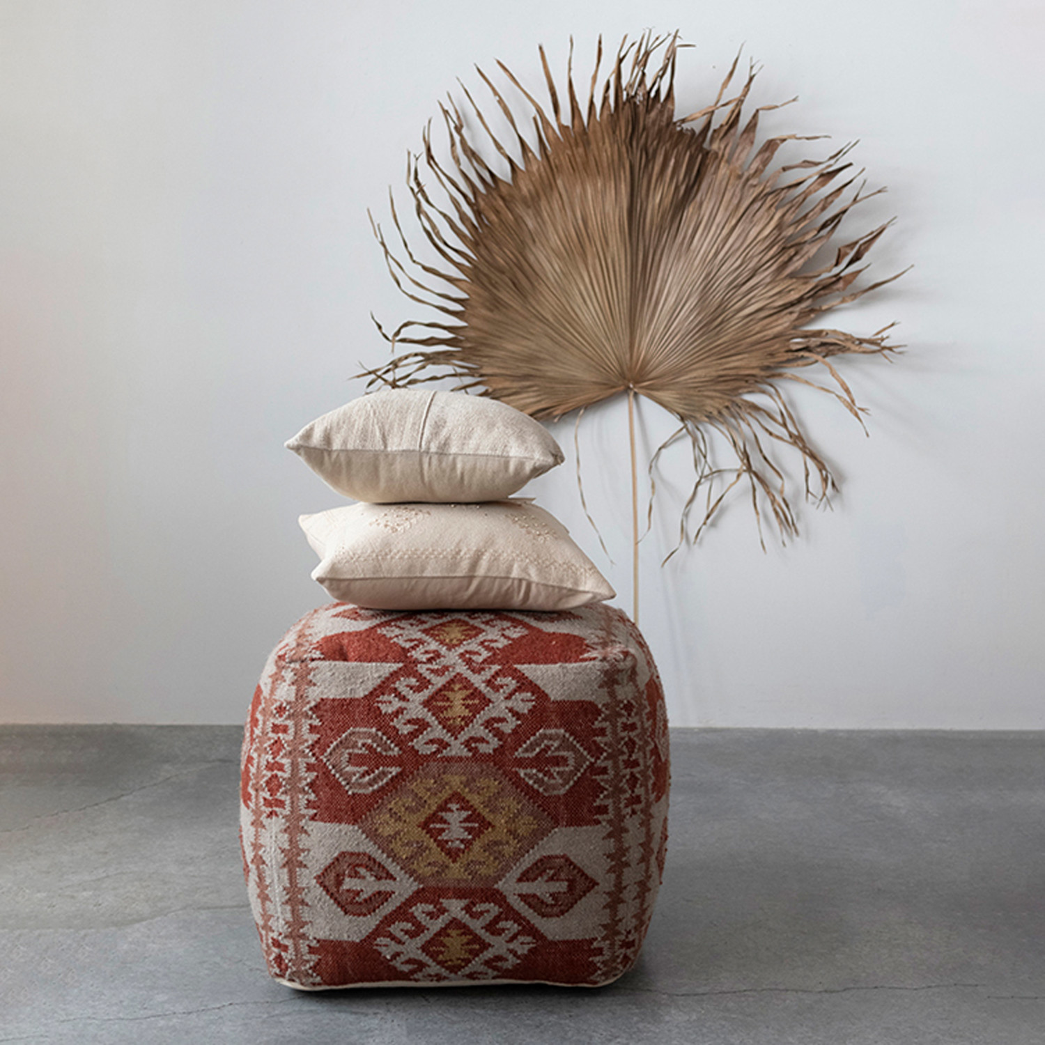 This southwestern-inspired throw pillow cover showcases geometric embroidery on cotton, finished with delicate French knots. Linen color cotton lumbar pillow with embroidery and French knots; Linen color cotton encasement on back. Express your constantly evolving style with the simple addition of this eye-catching pillow. Removable cotton throw pillow cover with polyester insert; Back zipper with hidden flap; Machine wash cold, gentle cycle, tumble dry low, do not bleach, warm iron if needed.