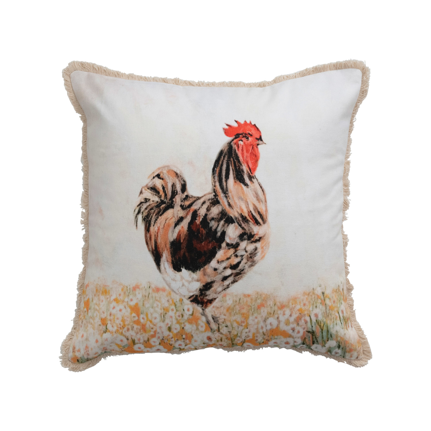 Catalog Name: 18" Square Cotton Pillow w/ Rooster & Eyelash Fringe, Multi Color ©