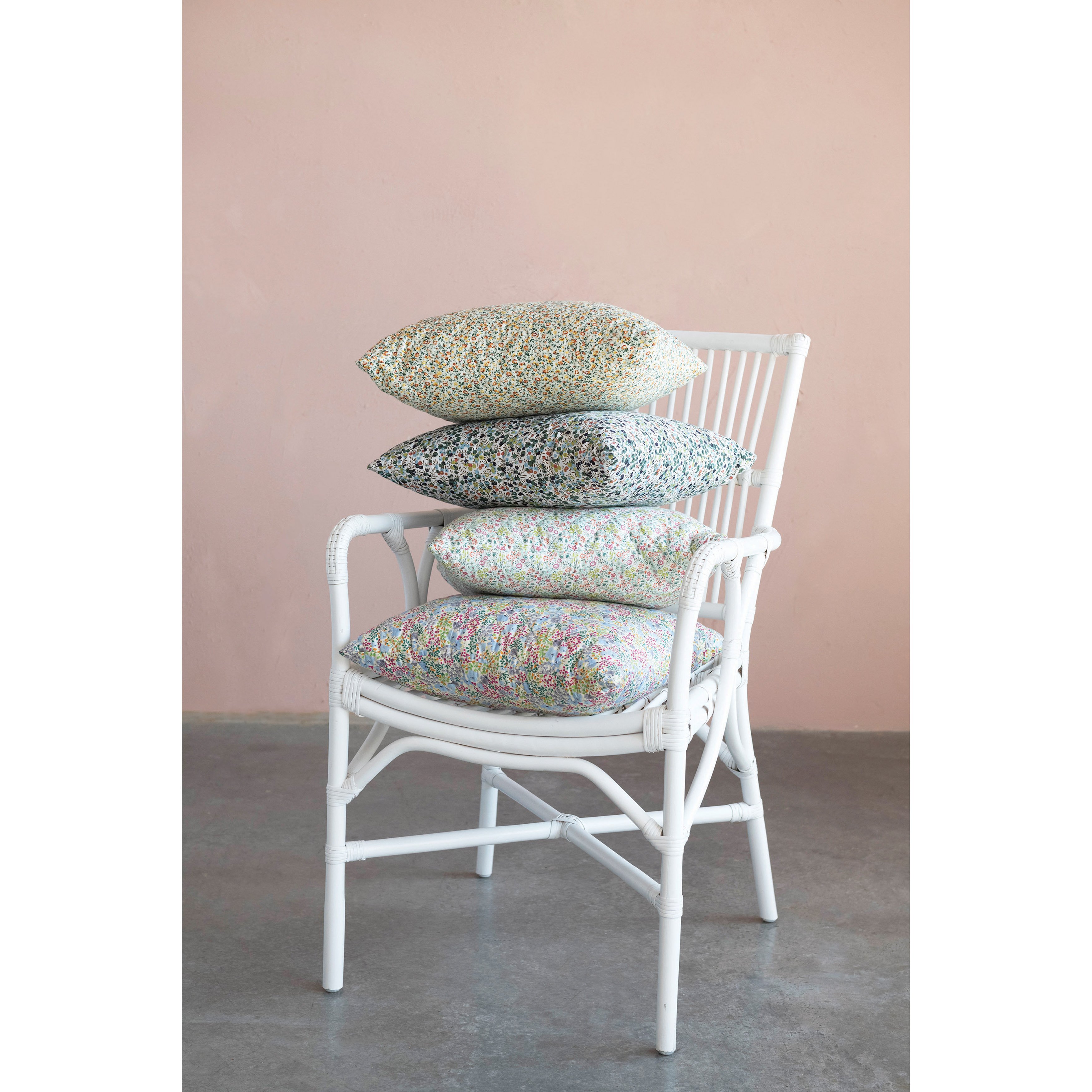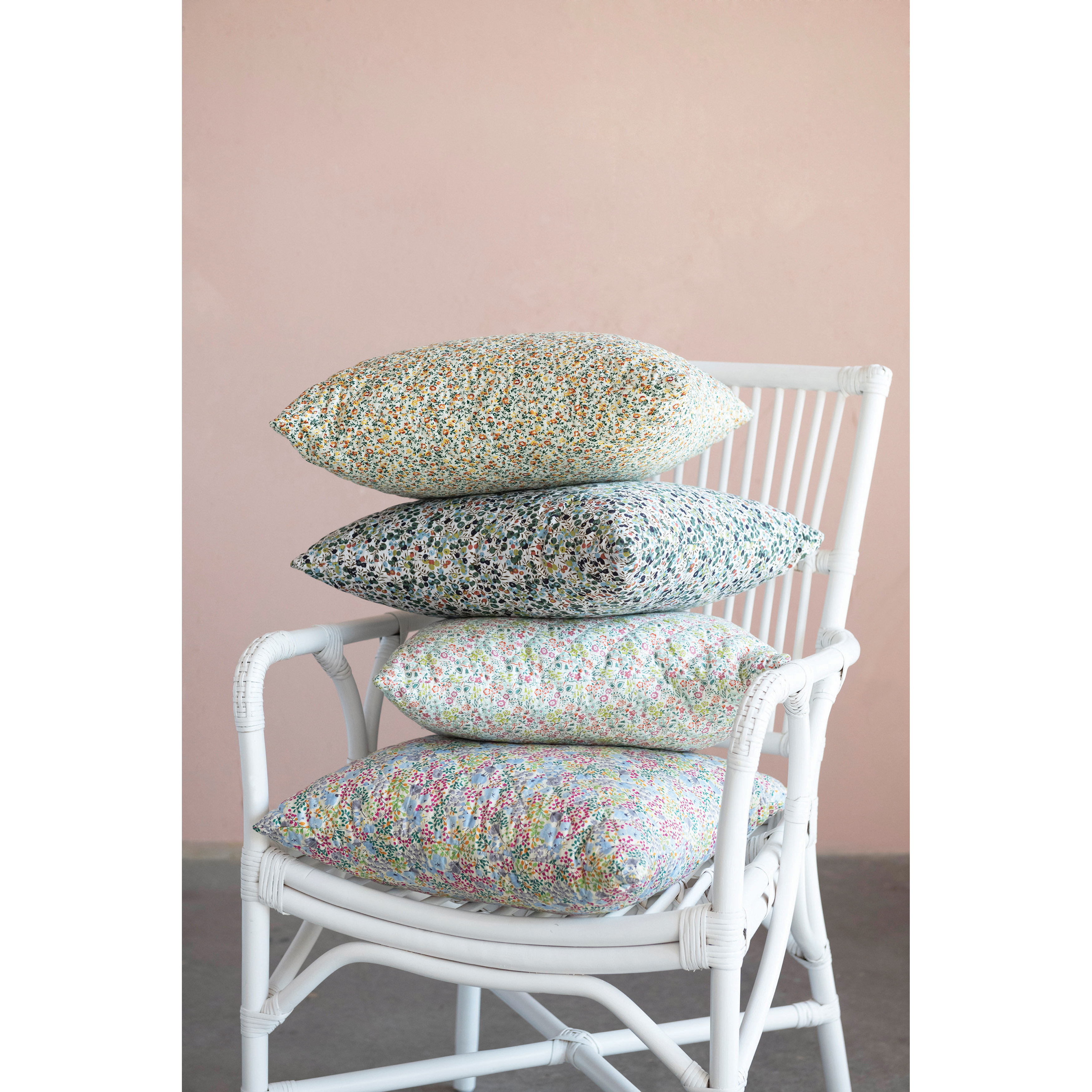 Catalog Name: 18" Square Cotton Printed Pillow w/ Ditsy Floral Pattern, Multi Color, 4 Styles