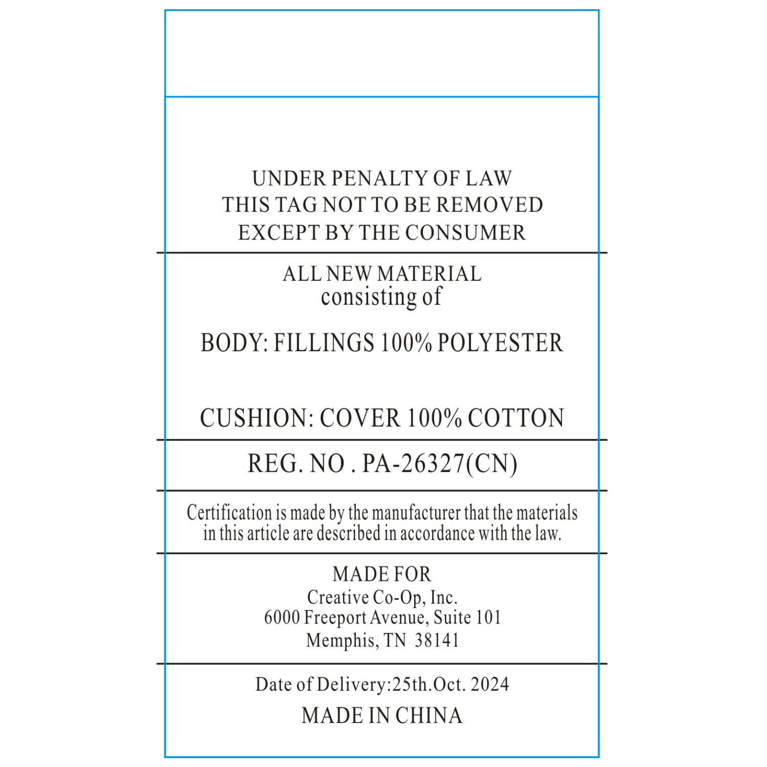 Materials: Cover:100% Cotton, Filling: 100% Polyester, Zipper : 95% Polyester, 5% Iron