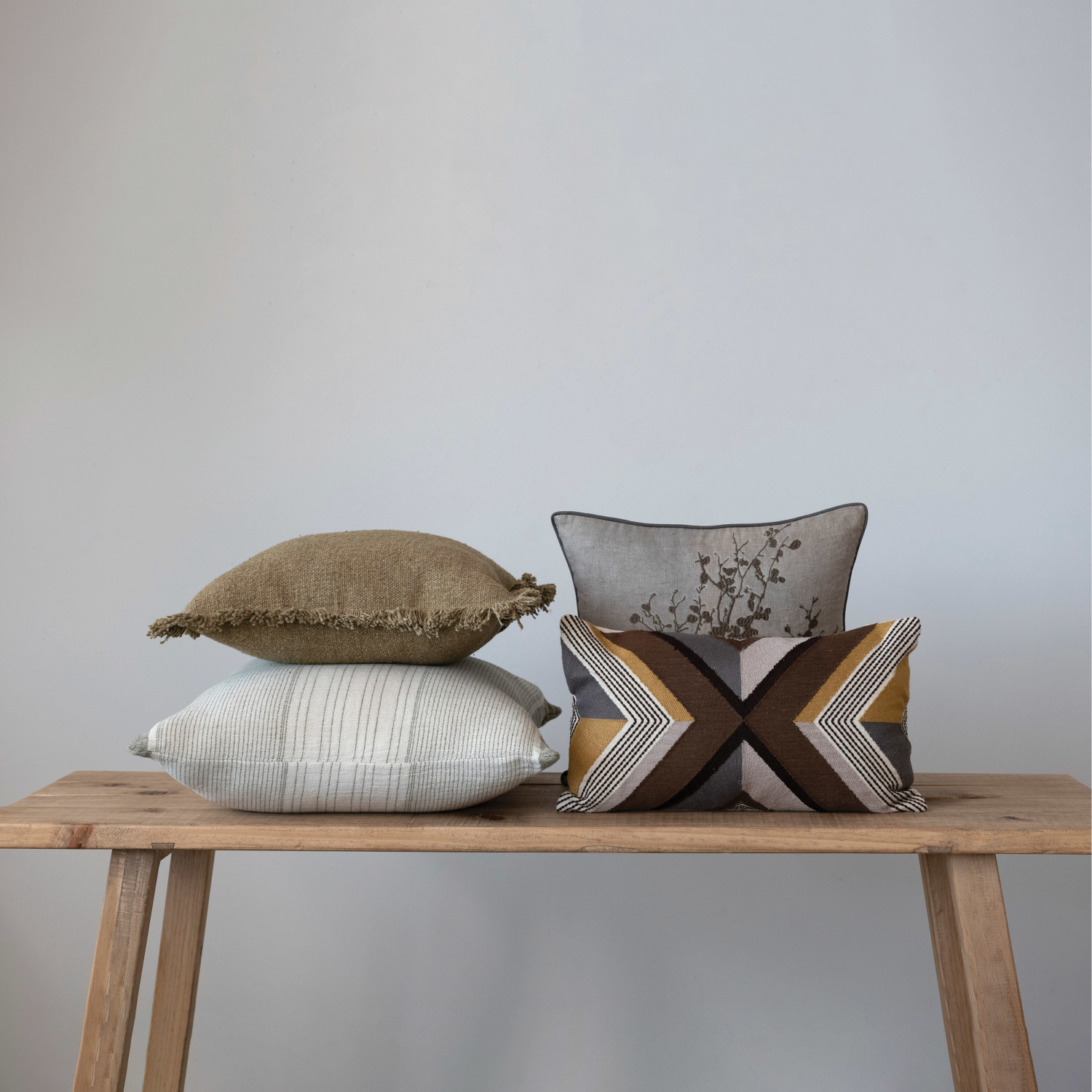 20" x 12" Cotton Embroidered Lumbar Pillow w/ Line Design