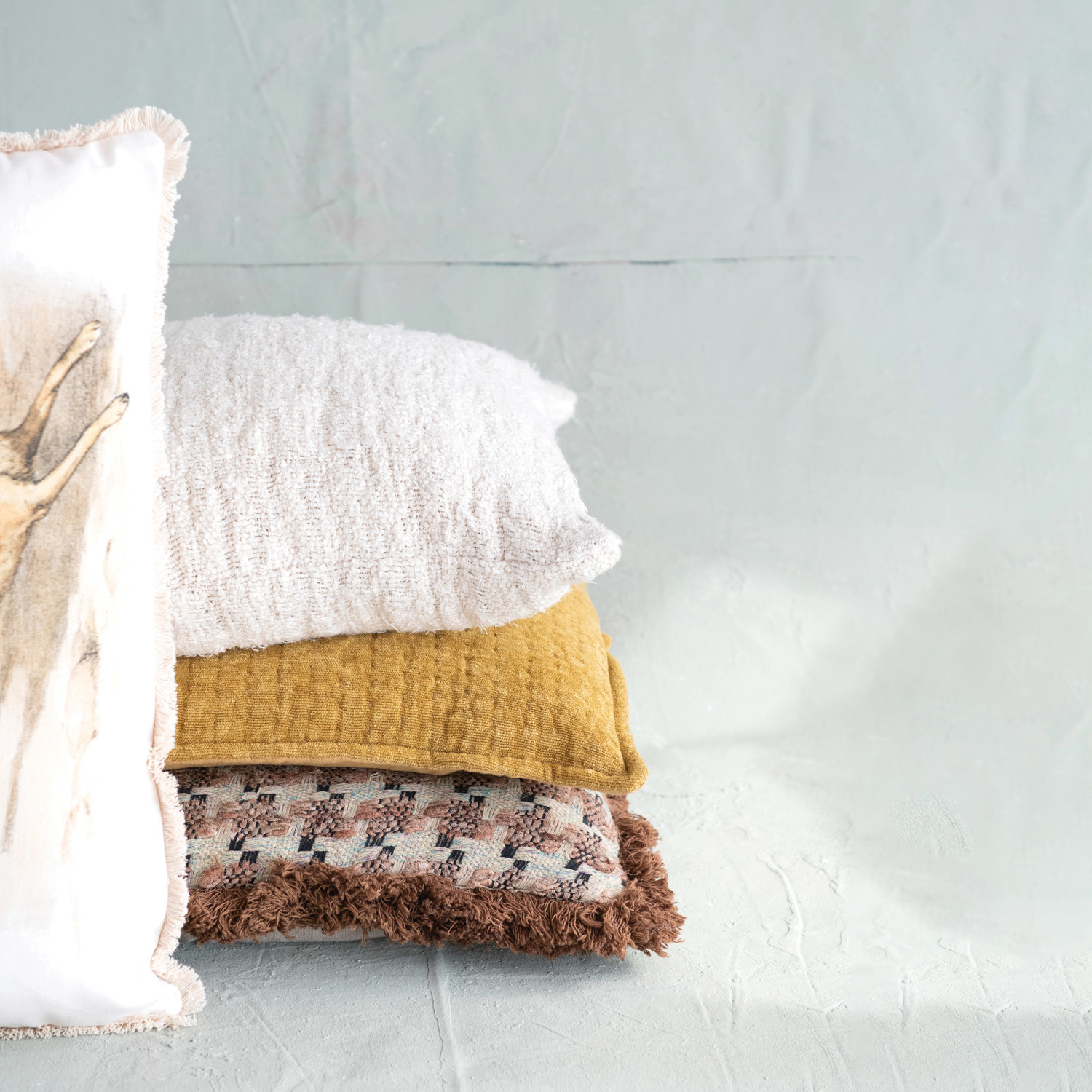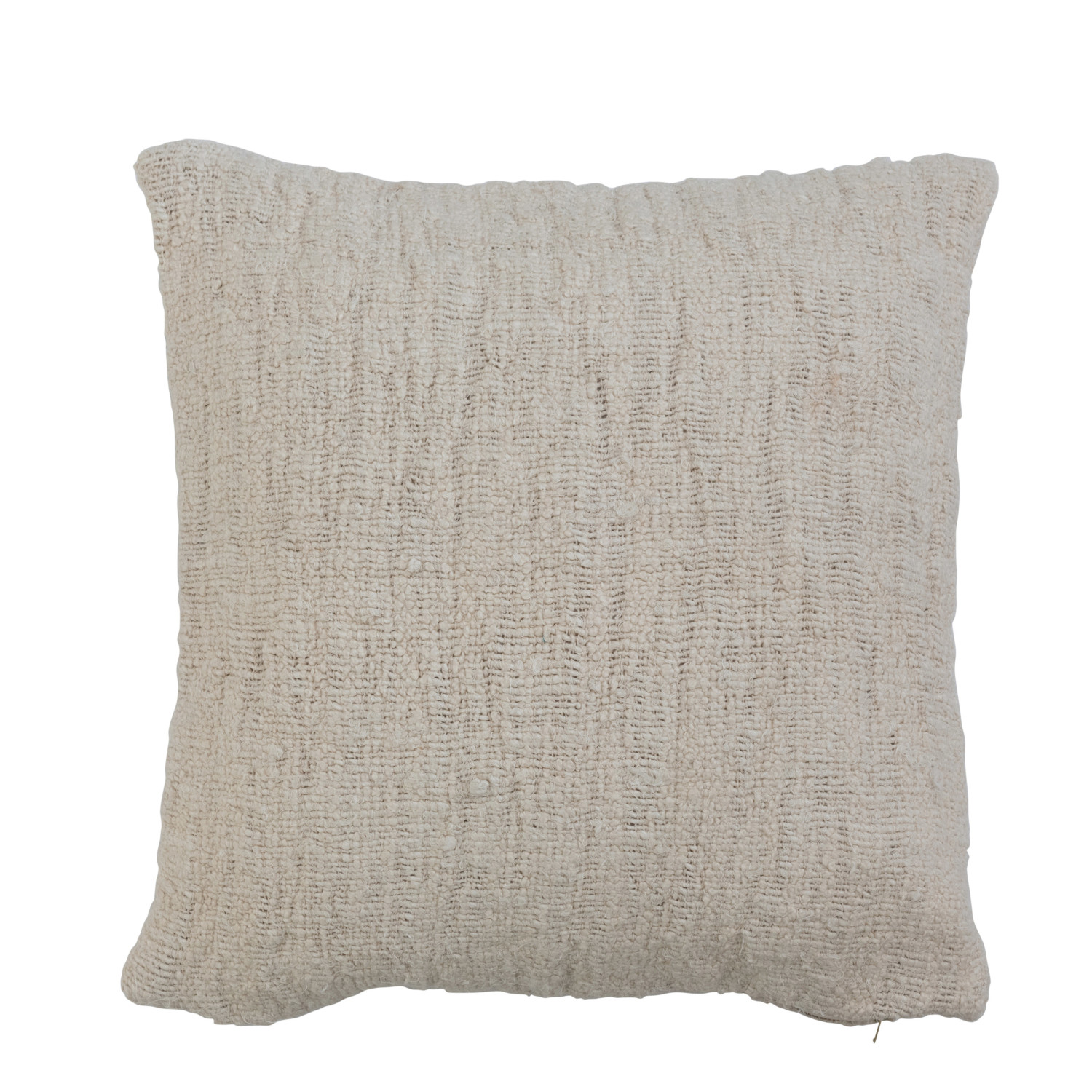 Catalog Name: 18" Square Stonewashed Silk & Woven Cotton Pillow, Cream Color