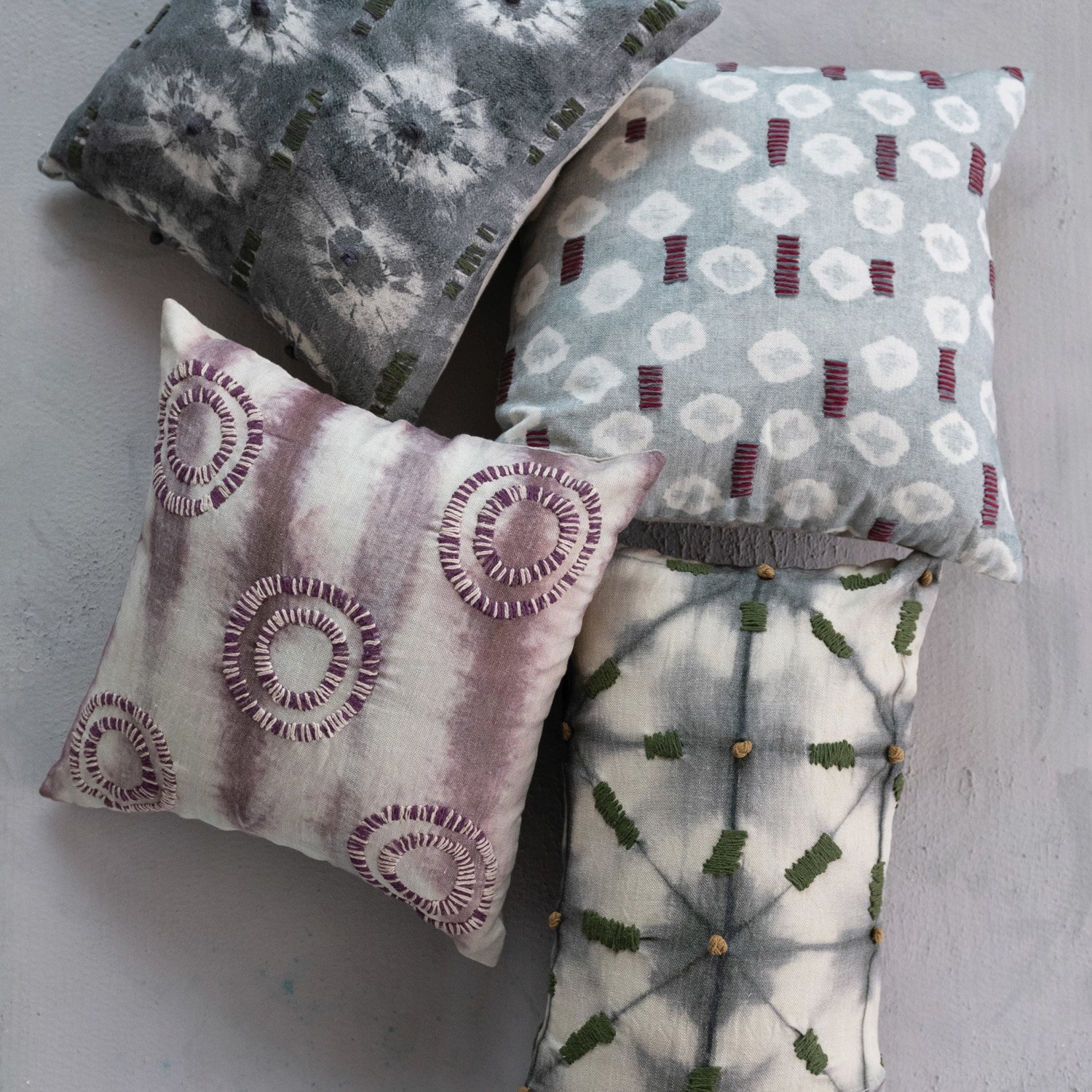 18" Linen Printed Pillow w/ Hand-Embroidery & Chambray Back, Polyester Fill