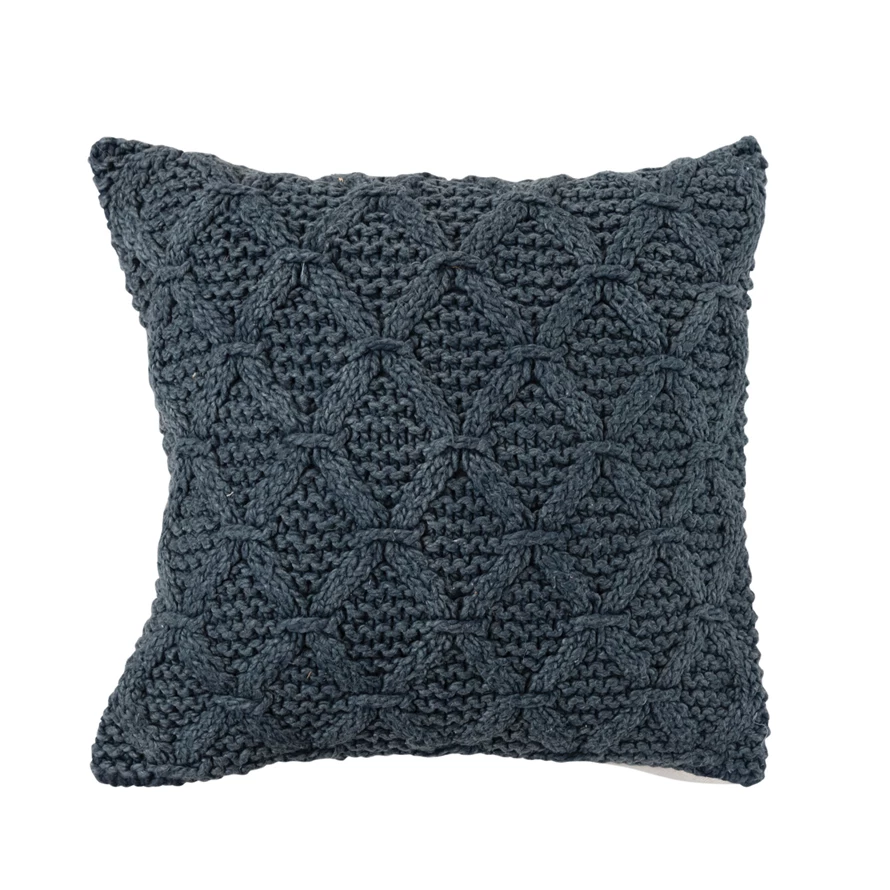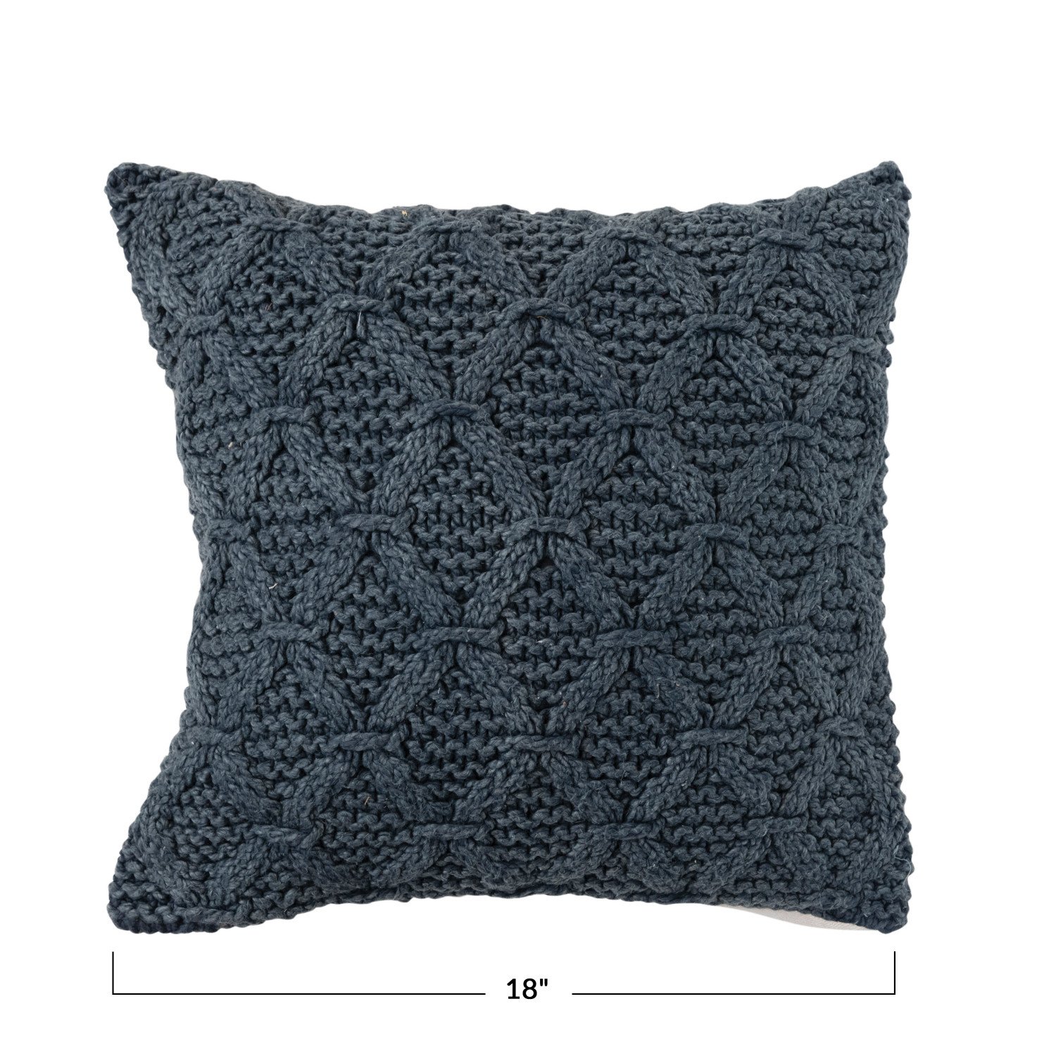 Catalog Name: 18" Square Woven Cotton Cable Knit Pillow w/ Pattern, Blue