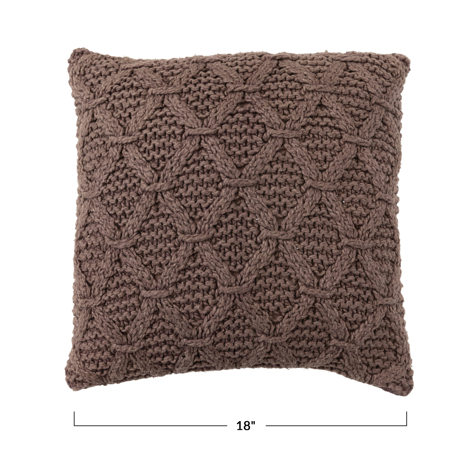 Catalog Name: 18" Square Cotton Slub Pillow w/ Diamond Pattern, Brown