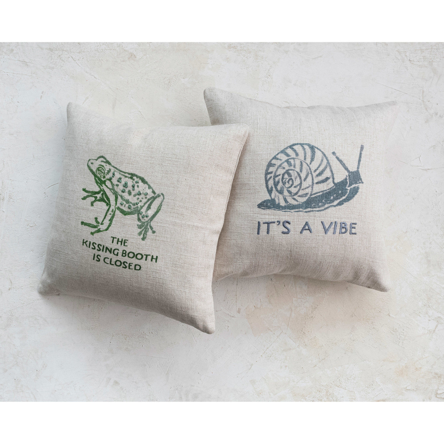 Add a whimsical touch to every home decor with the 16-inch Square Linen Blend Printed Pillow featuring an adorable frog and the playful text "The Kissing Booth is Closed", with Intricate French knots that add dimension and charm to the design. The pillow's linen blend fabric provides a soft and durable texture, while the natural and green color palette complements a variety of interior styles, and can be put on the couch, bed, or favorite chair for a delightful accent. This pillow features a rayon-linen blend cover that is comfortable and durable, and a 16-inch square shape that is versatile. This product is made of rayon and linen blend. This pillow measures 16 inches in length and 16 inches in width. Add a whimsical touch to every home decor with the 16-inch Square Linen Blend Printed Pillow featuring an adorable frog and the playful text "The Kissing Booth is Closed", with Intricate French knots that add dimension and charm to the design. The pillow's linen blend fabric provides a soft and durable texture, while the natural and green color palette complements a variety of interior styles, and can be put on the couch, bed, or favorite chair for a delightful accent. This pillow features a rayon-linen blend cover that is comfortable and durable, and a 16-inch square shape that is versatile. This product is made of rayon and linen blend.