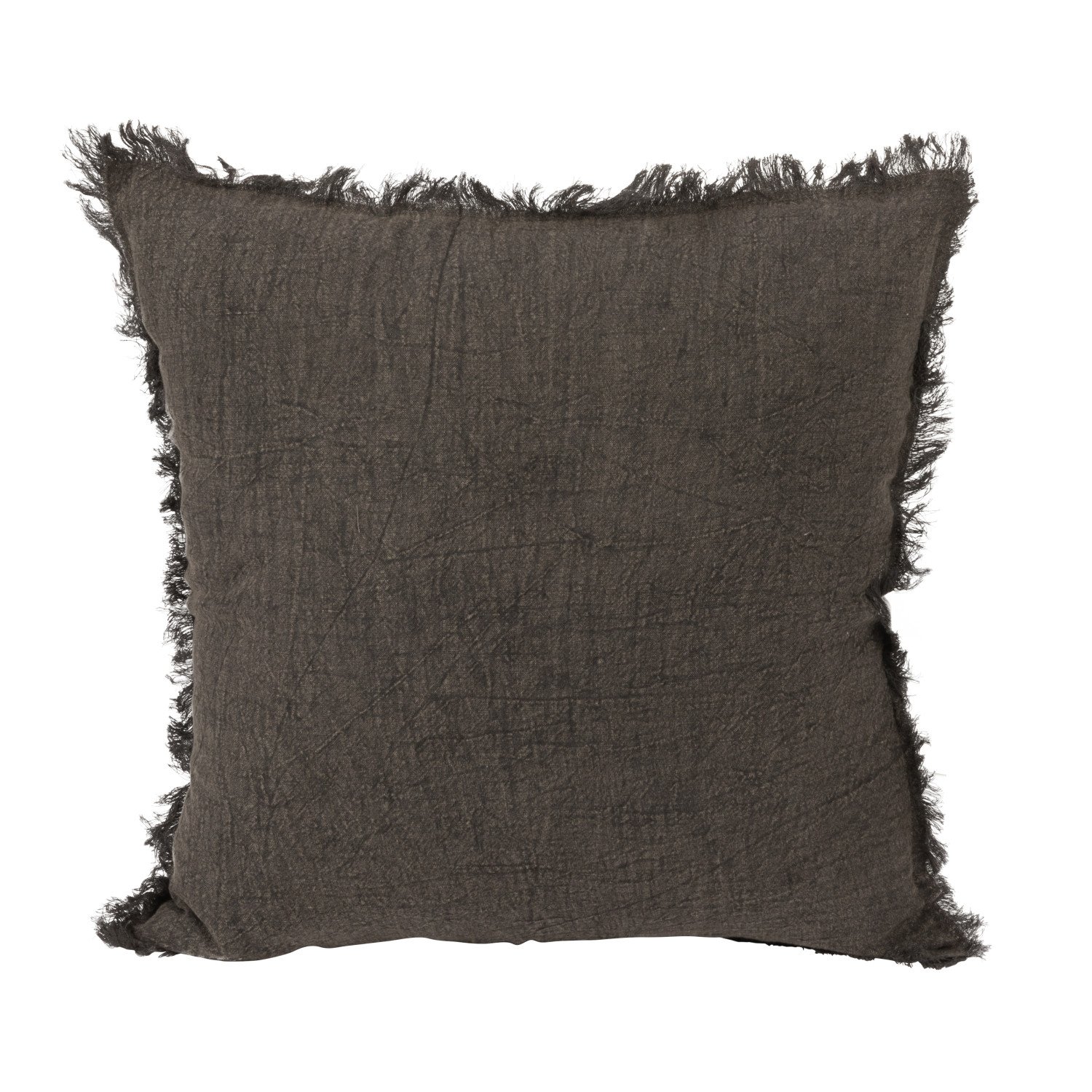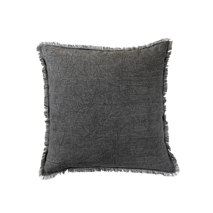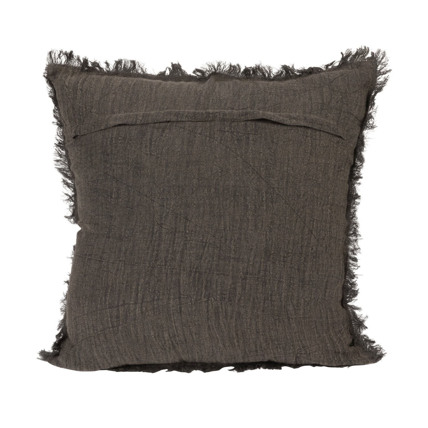 Catalog Name: 20" Square Stonewashed Linen Pillow w/ Fringe, Charcoal Color