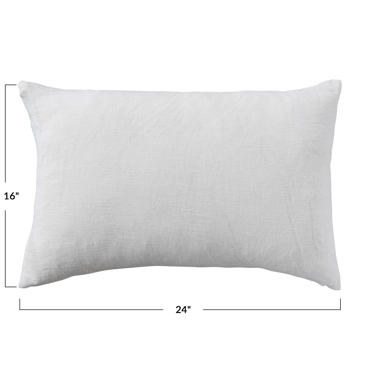 Catalog Name: 24"L x 16"H Stonewashed Linen Lumbar Pillow, Ivory Color