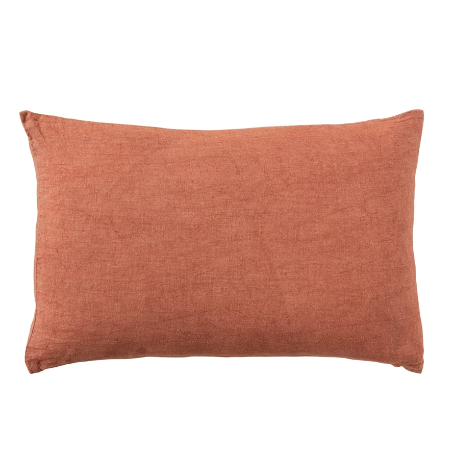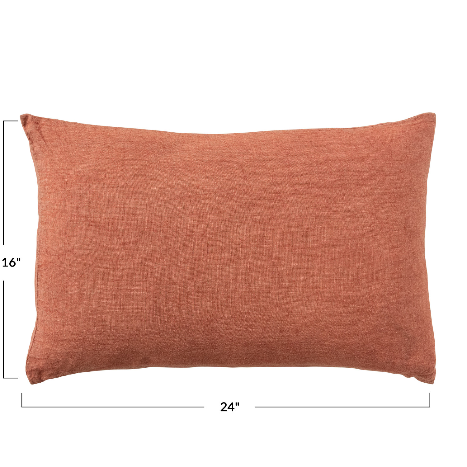 Catalog Name: 24"L x 16"H Stonewashed Linen Lumbar Pillow, Rust Color