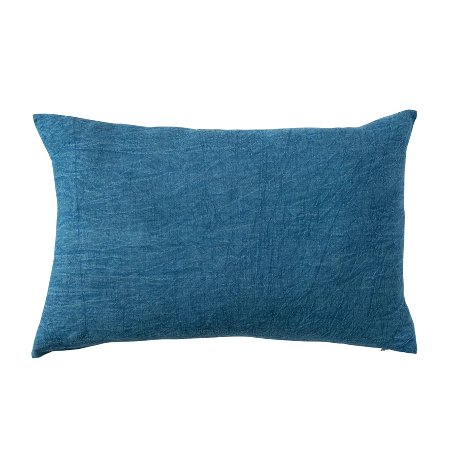 Catalog Name: 24"L x 16"H Stonewashed Linen Lumbar Pillow, Navy Color