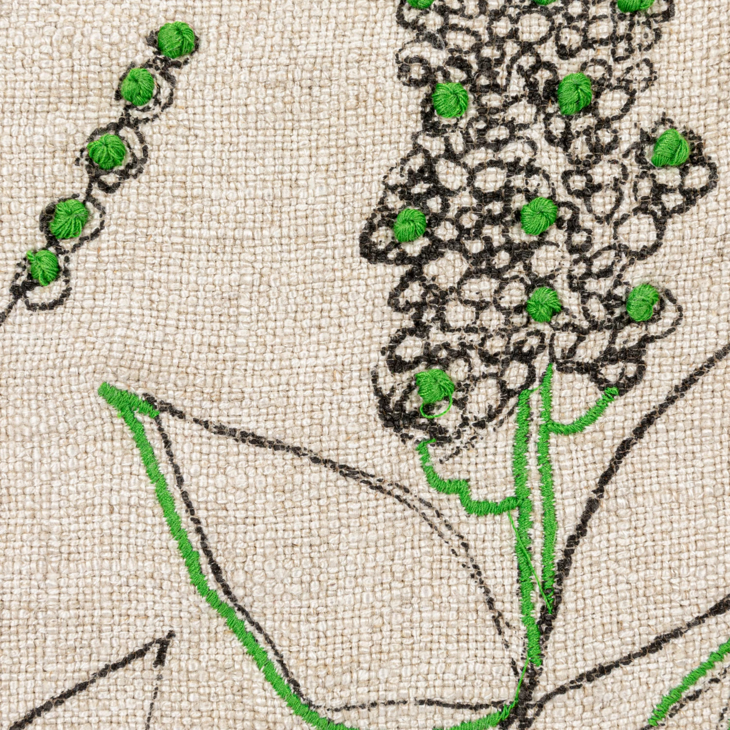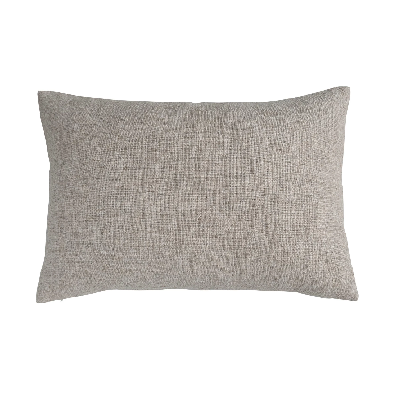 Catalog Name: 24"L x 16"H Linen Blend Printed Lumbar Pillow w/ Botanicals & Hand-Embroidered Kantha Stitch, Natural, Black & Green ©