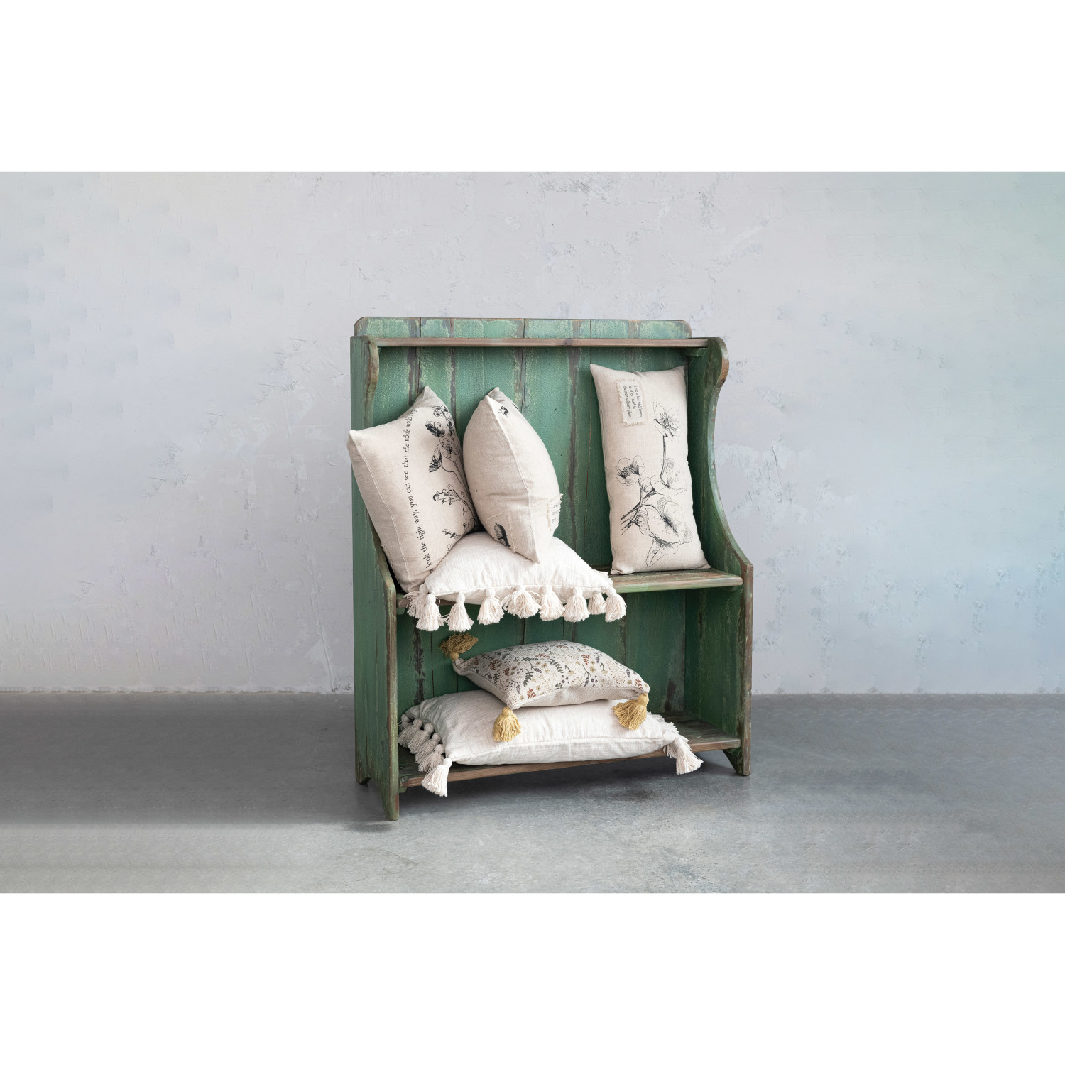 Catalog Name: 24"L x 12"H Linen Blend Printed Lumbar Pillow w/ Saying, Flowers & Bird on Back, Natural & Black