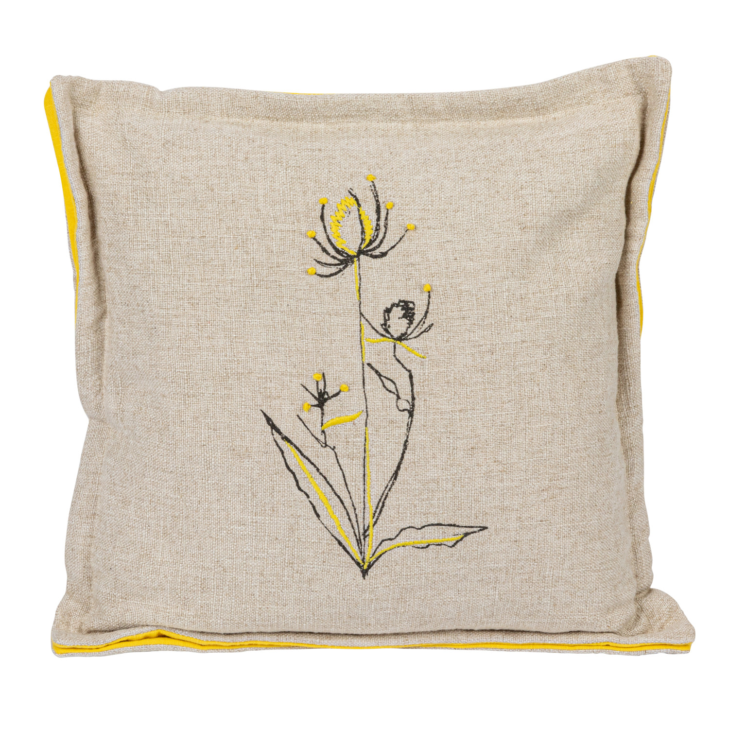 Catalog Name: 16" Square Hand-Embroidered Linen Blend Printed Pillow w/ Flower, Flanged Edge, French Knots & Hand-Embroidered Kantha Stitch, Multi Color, 2 Styles ©