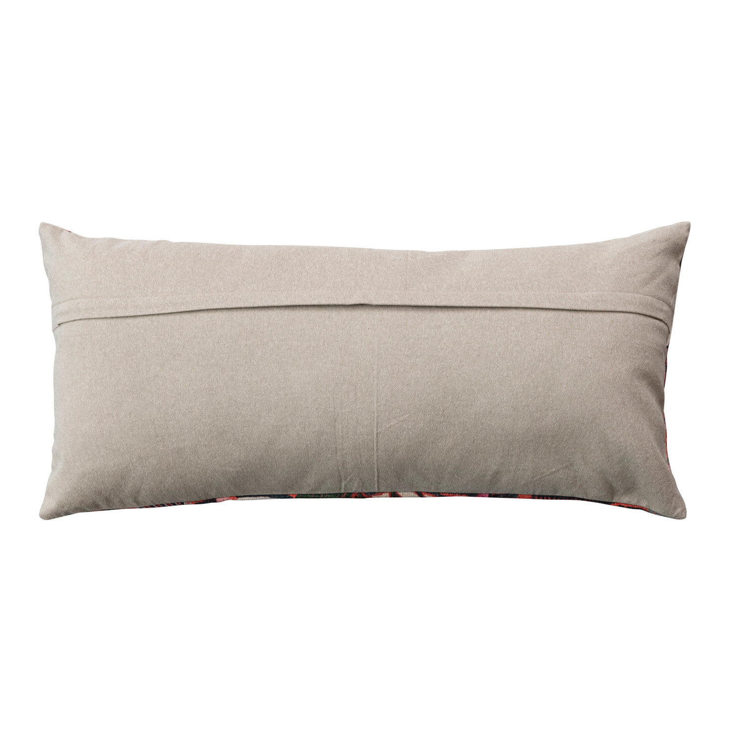 This multicolor floral embroidered cotton slub lumbar pillow with a chambray back is the perfect way to add a touch of bold color and intricate detail to the home. The soft yet durable cotton slub fabric and intricate floral embroidery make it a statement piece in any room. The chambray back adds a stylish contrast to the vibrant floral embroidery, making this pillow a versatile and eye-catching accessory that effortlessly complements various interior styles. This pillow is perfect for any room in the home, from the living room to the bedroom. Use it as a throw pillow on the couch or bed or as a floor pillow to create a cozy seating area. It is also an excellent gift for any occasion. The cushion measures 36 inches long and 16 inches high. Whether used as a lumbar support on the couch or as a decorative accent on the bed, this pillow will surely be a welcome addition to the home and will make the home more beautiful and cozy. Add a touch of bold color and intricate detail to the home with this multicolor floral embroidered cotton slub lumbar pillow. With back opening; add some natural style to bohemian or eclectic room. Cotton fill insert included. The pillow cover and fill is made from cotton.